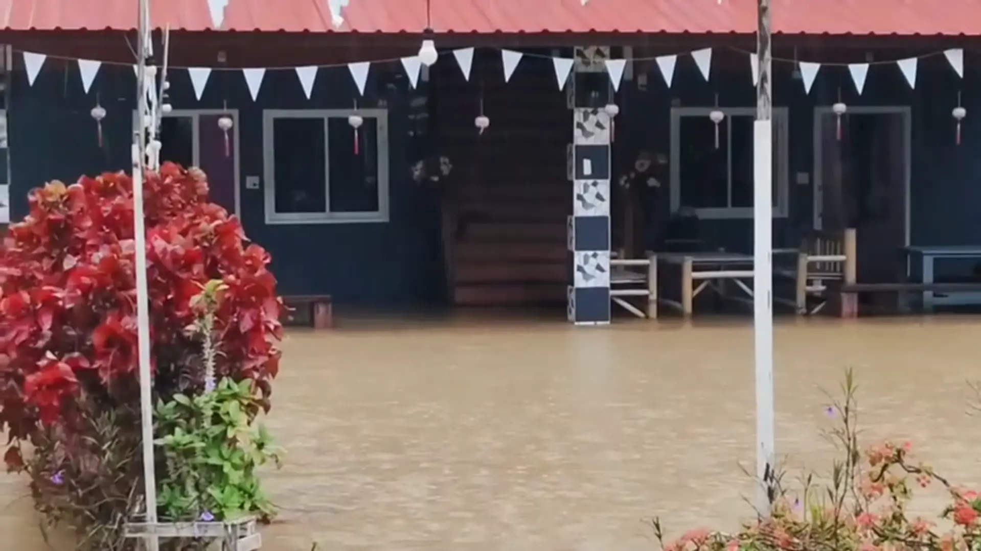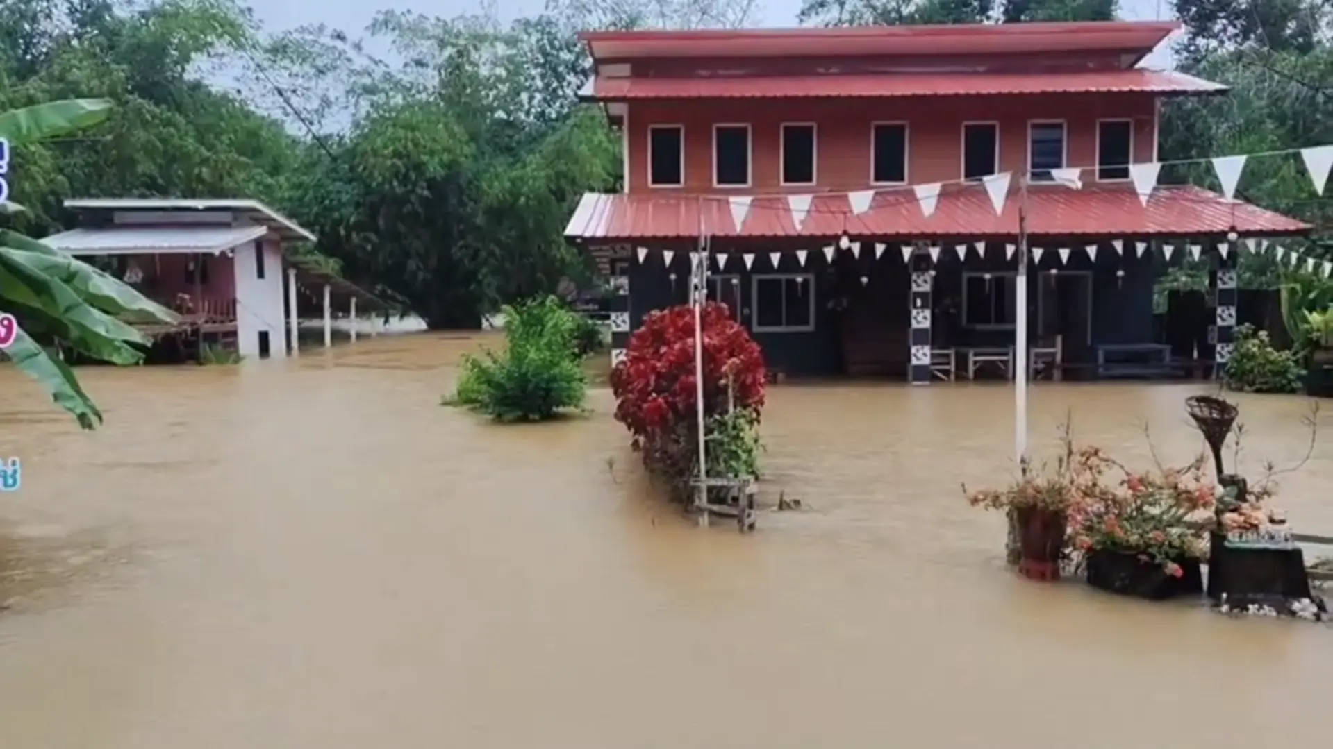 ขณะเดียวกันพบว่า น้ำจากคลองธรรมชาติ ล้นตลิ่งไหลเข้าท่วมถนน , บ้านเรือน และรีสอร์ท ถูกน้ำท่วม , ชาวบ้าน ไม่สามารถสัญจรไป-มาได้   ส่งผลให้นักเรียนไม่สามารถออกจากบ้าน เดินทางไปโรงเรียนได้