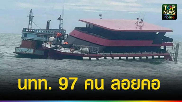 เรือท่องเที่ยว ถูกคลื่นทะเลซัดท้องเรือล่ม นทท. 97คน ลอยคอ เจ้าหน้าที่เร่งช่วย นายอำเภอ-ผู้ว่าฯ ระบุ ทุกคนปลอดภัย