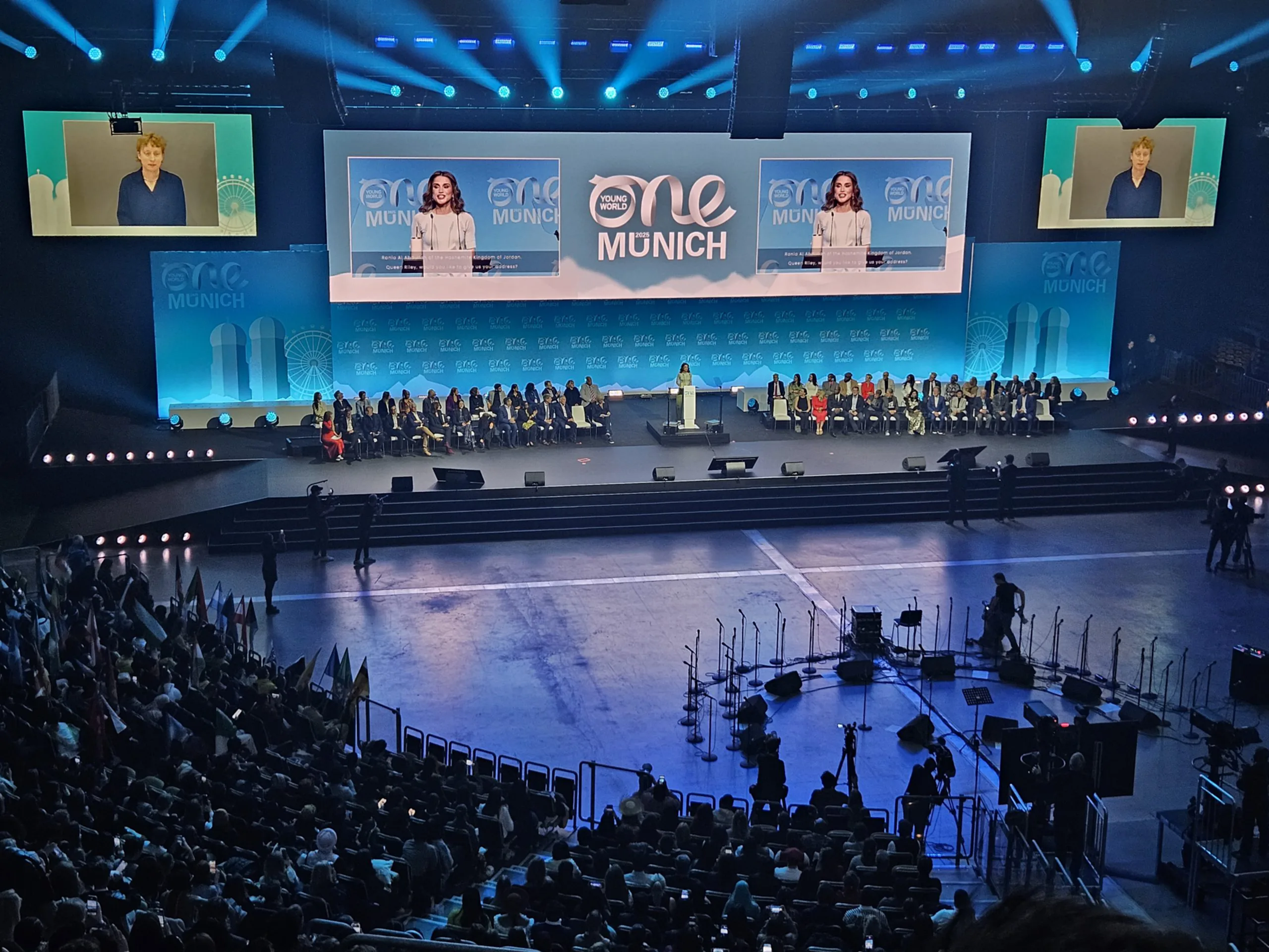 หนึ่งในสารที่ทรงพลังที่สุดในการประชุมมาจาก สมเด็จพระราชินีรานยาแห่งจอร์แดน ซึ่งเป็นผู้นำที่มีบทบาทด้านการส่งเสริมสิทธิสตรี การศึกษา สุขภาพ และพลังเยาวชน ได้ยกประเด็นเรื่องคุณค่าของความเป็นมนุษย์ บนเวทีไว้ว่า “ความเกลียดชังไม่ได้เริ่มต้นจากระเบิดหรืออาวุธ แต่มาจากคำพูดที่ค่อย ๆ ลดทอนความเป็นมนุษย์ จนสังคมมองข้ามคุณค่าของชีวิต และเมื่อความเฉยชายิ่งเติบโตในจิตใจ ความอยุติธรรมก็ยิ่งขยายวงกว้าง ในยุคที่ AI กำลังก้าวขึ้นมาแทนที่ความสัมพันธ์ของมนุษย์ เราจึงต้องปกป้องความสามารถในการคิด วิเคราะห์ และเห็นอกเห็นใจต่อกันมากกว่าที่เคย คนรุ่นใหม่ทั่วโลกต้องส่งเสียงให้ชัดว่าเทคโนโลยีต้องเดินคู่ไปกับศีลธรรมและศักดิ์ศรีของความเป็นมนุษย์ เพราะความหวังไม่ใช่แค่ความฝัน แต่คือความกล้าที่จะยืนหยัดต่อความถูกต้อง กล้าตั้งคำถามกับความอยุติธรรม และรักษาความเป็นมนุษย์ของเราไว้”