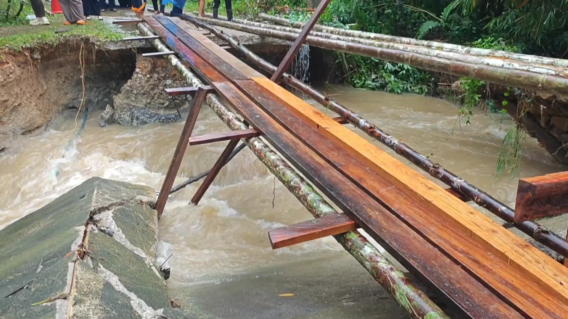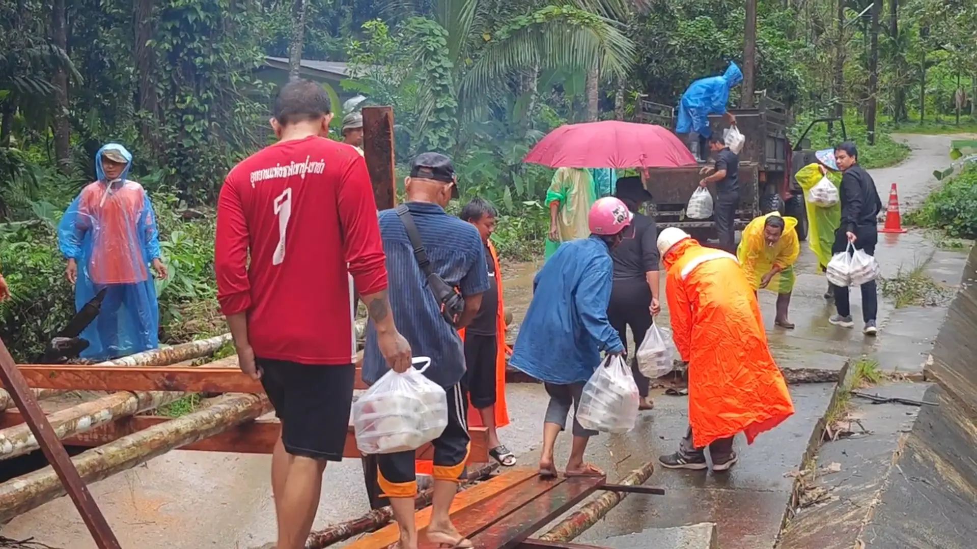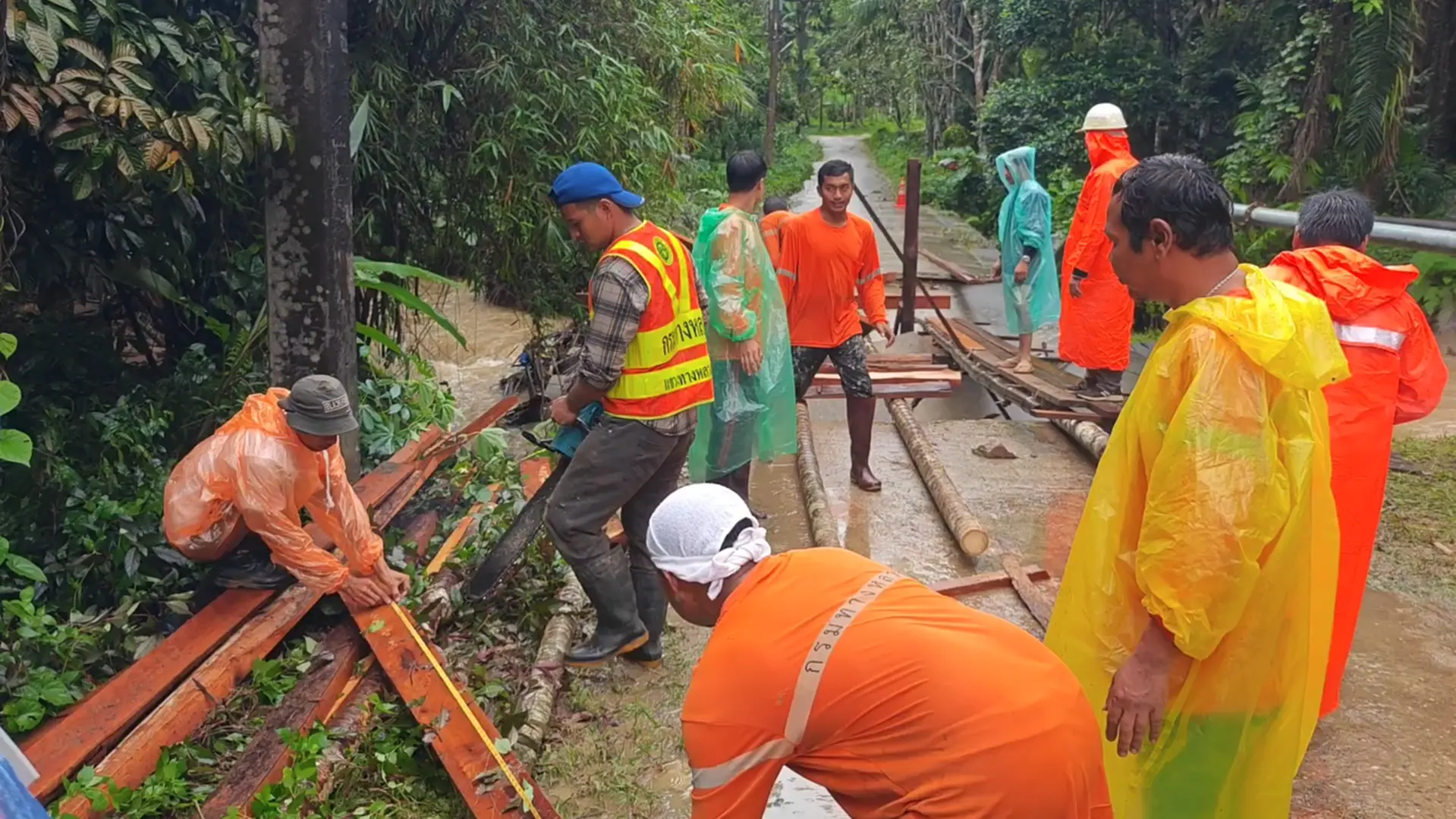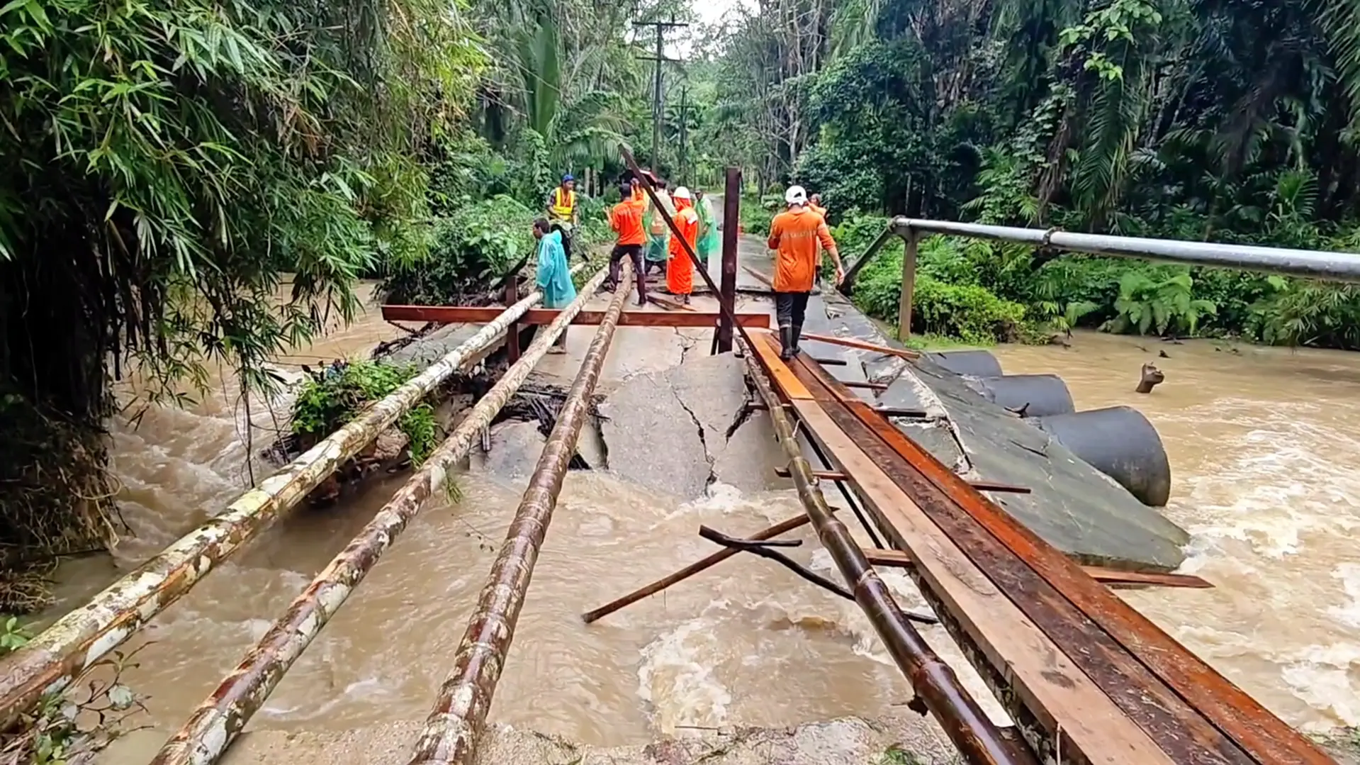 เมื่อวันที่ 20 พฤศจิกายน 2568 ฝนที่ตกหนักต่อเนื่อง 2–3 วัน ในพื้นที่จังหวัดตรัง ส่งผลให้เกิดน้ำป่าไหลหลาก ลงแหล่งน้ำธรรมชาติ กระแสน้ำที่ไหลเชี่ยวกัดเซาะผิวถนนคอนกรีต ในพื้นที่หมู่ 5 บ้านวังสมบูรณ์ ตำบลเขาปูน อำเภอห้วยยอด จังหวัดตรัง พังเสียหาย ชาวบ้านกว่า 40 ครัวเรือน ประมาณ 150 คน ไม่สามารถสัญจรเข้า–ออกพื้นที่ได้ ขณะที่ในพื้นที่ยังมีฝนตกต่อเนื่อง