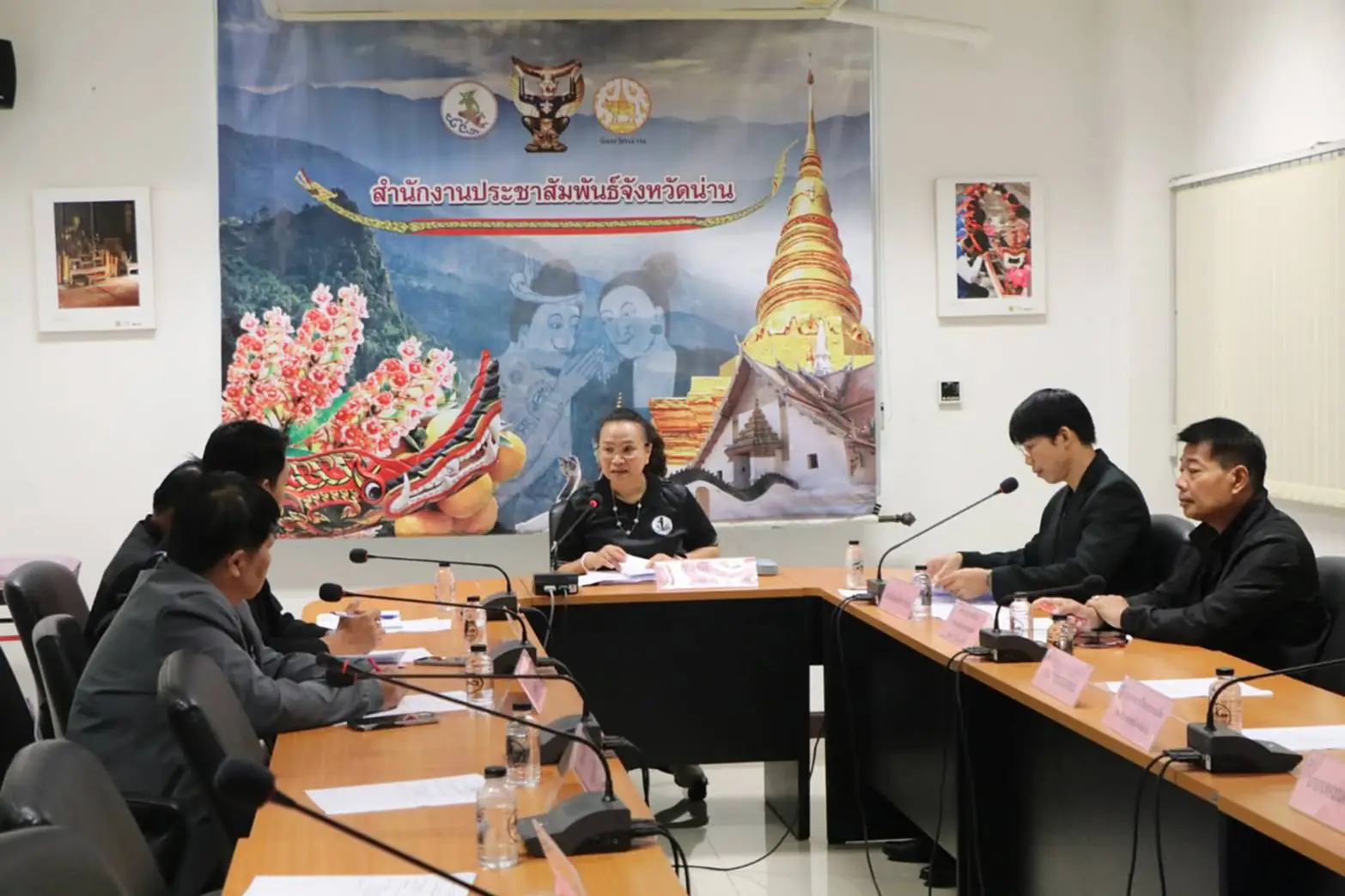 วันที่ 19 พฤศจิกายน 2568 เวลา 09.30 น. ที่ห้องประชุมสำนักงานประชาสัมพันธ์จังหวัดน่าน ชั้น 2 ศาลากลางจังหวัดน่าน นางวิไลวรรณ บุดาสา รองผู้ว่าราชการจังหวัดน่าน เป็นประธานการประชุมคณะกรรมการด้านการประชาสัมพันธ์ เพื่อเตรียมความพร้อมจัดงานเทศกาลเคาท์ดาวน์ “นันทบุรี 2569” ครั้งที่ 1/2568 การประชุมมีนายโชคชัชกาญ ราชฟู ประชาสัมพันธ์จังหวัดน่าน นายเสริฐ ไชยยานันตา ท่องเที่ยวและกีฬาจังหวัดน่าน การท่องเที่ยวแห่งประเทศไทย สำนักงานน่าน สำนักงานพื้นที่พิเศษเพื่อการท่องเที่ยวอย่างยั่งยืนเมืองเก่าน่าน สมาคมสื่อมวลชน ผู้แทนสถานีวิทยุโมเดิร์นเรดิโอ อ.ส.ม.ท.น่าน เครือข่ายสื่อมวลชน ชมรมนักจัดรายการวิทยุ และเทศบาลเมืองน่าน เข้าร่วมอย่างพร้อมเพรียง