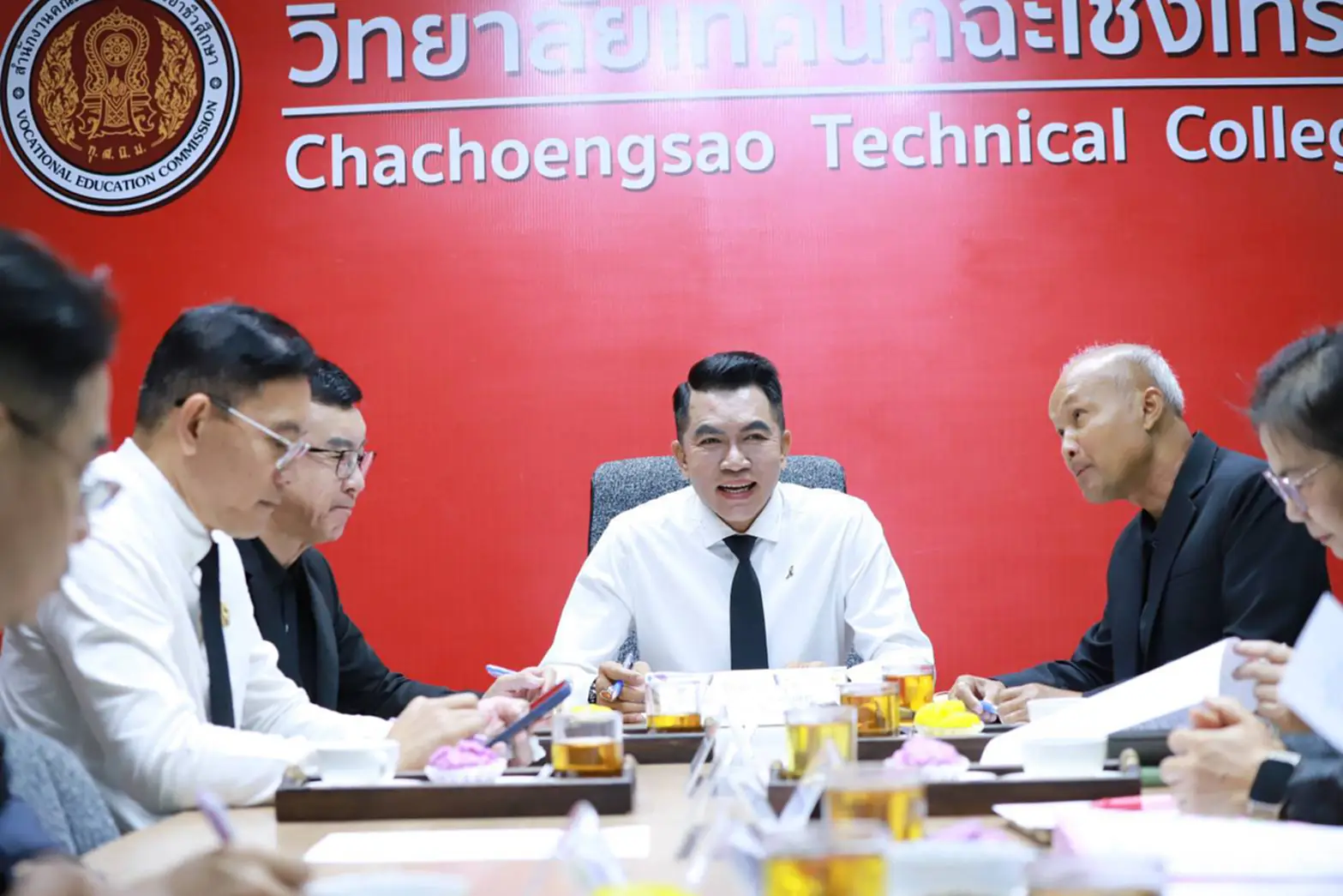 วันพฤหัสบดี ที่ 20 พฤศจิกายน 2568 เวลา 09.30 น. ว่าที่พันตรี ดร.วัชรพล ลักษณลม้าย ผู้อำนวยการ (วิทยฐานะเชี่ยวชาญ) วิทยาลัยเทคนิคฉะเชิงเทรา ผู้อำนวยการสำนักงานอาชีวศึกษาจังหวัดฉะเชิงเทรา เป็นประธานในการประชุมเตรียมความพร้อมจัดงานประชุมวิชาการ อกท.ระดับชาติ ครั้งที่ 46 และเตรียมรับเสด็จสมเด็จพระกนิษฐาธิราชเจ้า กรมสมเด็จพระเทพรัตนราชสุดาฯ สยามบรมราชกุมารี ซึ่งเสด็จมาเป็นองค์อุปถัมภ์ ณ วิทยาลัยเกษตรและเทคโนโลยีฉะเชิงเทรา ในวันพุธที่ 11 กุมภาพันธ์ 2569 โดยมีคณะผู้บริหารของสถานศึกษา คณะครู และบุคลากรทางการศึกษาในสังกัด สอจ.ฉะเชิงเทรา เข้าร่วมประชุมดังต่อไปนี้ 1. นายสุพจน์ ทองเหลือง ผู้อำนวยการวิทยาลัยอาชีวศึกษาฉะเชิงเทรา 2. นายณัชพล ฉลูทอง ผู้อำนวยการวิทยาลัยเกษตรและเทคโนโลยีฉะเชิงเทรา 3. นายสุพิษ ภูแทนนา ผู้อำนวยการวิทยาลัยเทคนิคพนมสารคาม 4. นางปนัดดา กิตติวงศ์ธรรม ผู้อำนวยการวิทยาลัยการอาชีพบางปะกง 5. นางเวฬุรีย์ อุปถัมภ์ ผู้อำนวยการวิทยาลัยเทคนิคจุฬาภรณ์ (ลาดขวาง) 6. นายประเสริฐ แก้วแจ่ม ผู้อำนวยการวิทยาลัยสารพัดช่างฉะเชิงเทรา 7. นางสาวสมจิตต์ อุระงาม รองผู้อำนวยการวิทยาลัยเทคนิคฉะเชิงเทรา 8. นางสาวณัฐรินีย์ สุริวงษ์ รองผู้อำนวยการวิทยาลัยเทคนิคฉะเชิงเทรา 9. นายสุมิตร คชวงษ์ รองผู้อำนวยการวิทยาลัยเทคนิคฉะเชิงเทรา 10. นายรุ่งเรือง สูยะนันทน์ รองผู้อำนวยการวิทยาลัยเทคนิคฉะเชิงเทรา (เลขานุการ สอจ.ฉะเชิงเทรา) 11. นายวีระยุทธ มารยาท หัวหน้าสำนักงานอาชีวศึกษาจังหวัดฉะเชิงเทรา ณ ห้องประชุมพุทธโสธร 3 วิทยาลัยเทคนิคฉะเชิงเทรา ภาพ/ข่าว อาษา / ปรีญาภรณ์ ผู้สื่อข่าว TOPNEWS ทั่วไทย จ.ฉะเชิงเทรา ล่างชื่อ ข่าวที่น่าสนใจ ข่าวที่เกี่ยวข้อง -