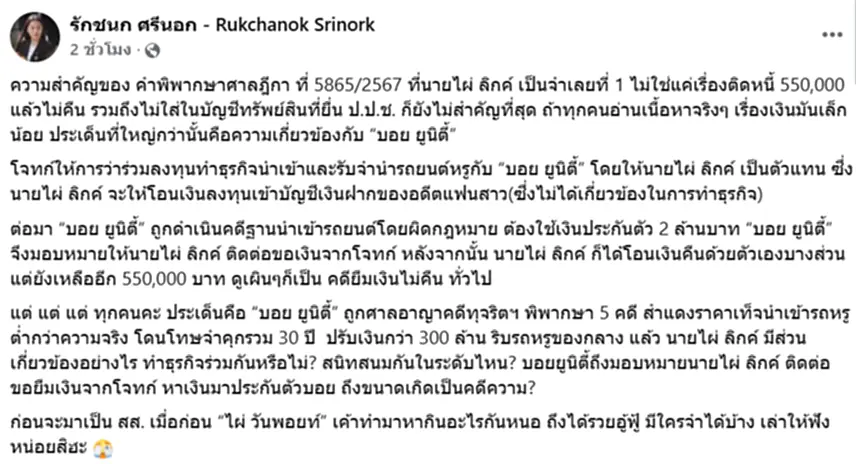 สำหรับประเด็นเรื่องหนี้ตามคำพิพากษา 550,000 บาทนั้น