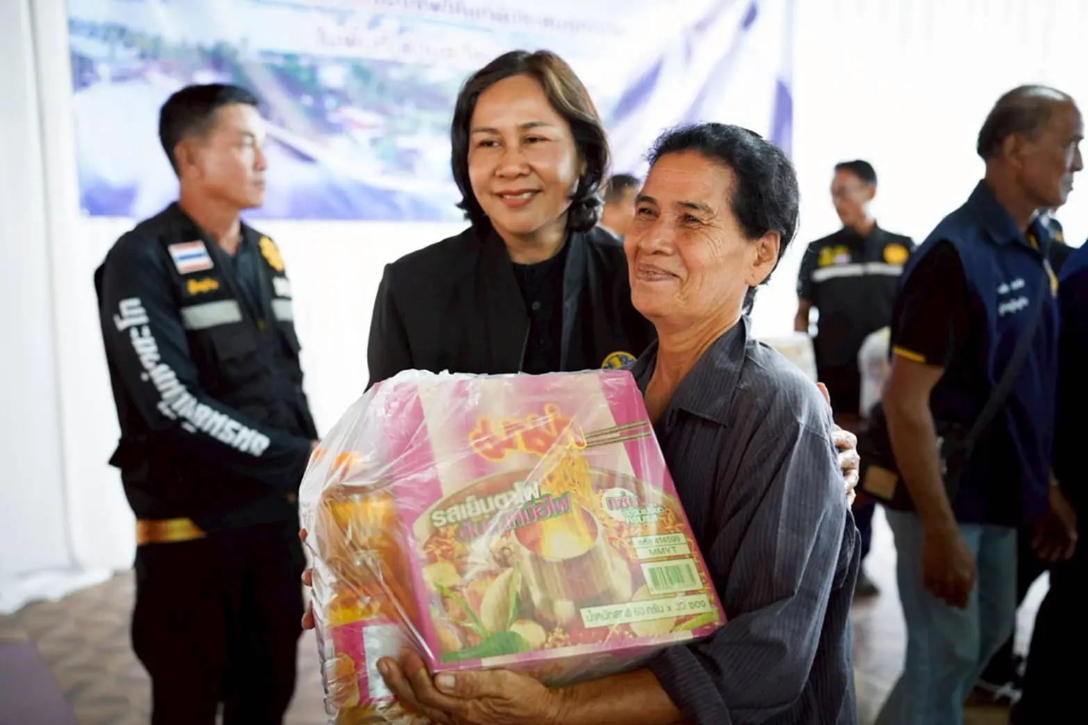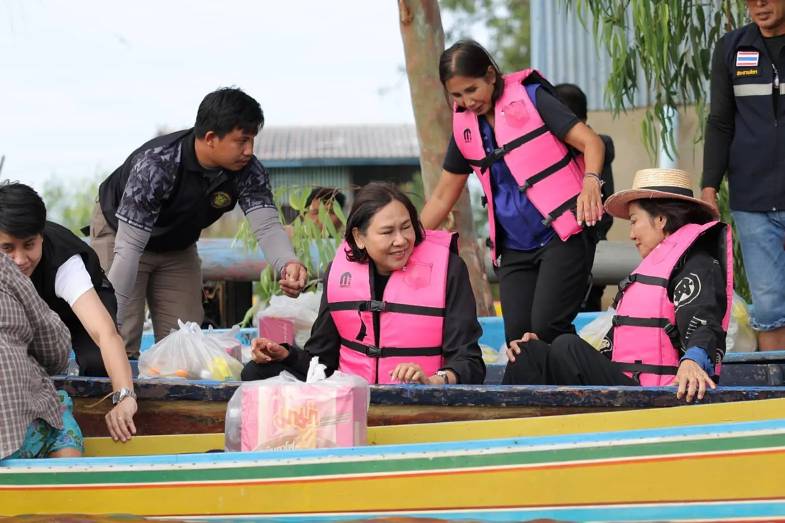 จากนั้นนางสาวชุติพร เสชัง ผู้ว่าราชการจังหวัดนครสวรรค์ พร้อมคณะฯ ได้ลงเรือเพื่อในสิ่งของดำรงชีพให้แก่ผู้ประสบอุทกภัยให้กับครัวเรือนที่ได้รับผลกระทบ ที่บ้านรางบัว ตำบลวังมหากร อำเภอท่าตะโก จังหวัดนครสวรรค์ จำนวน 20 ราย และกล่าวให้กำลังใจแก่ประชาชนในพื้นที่