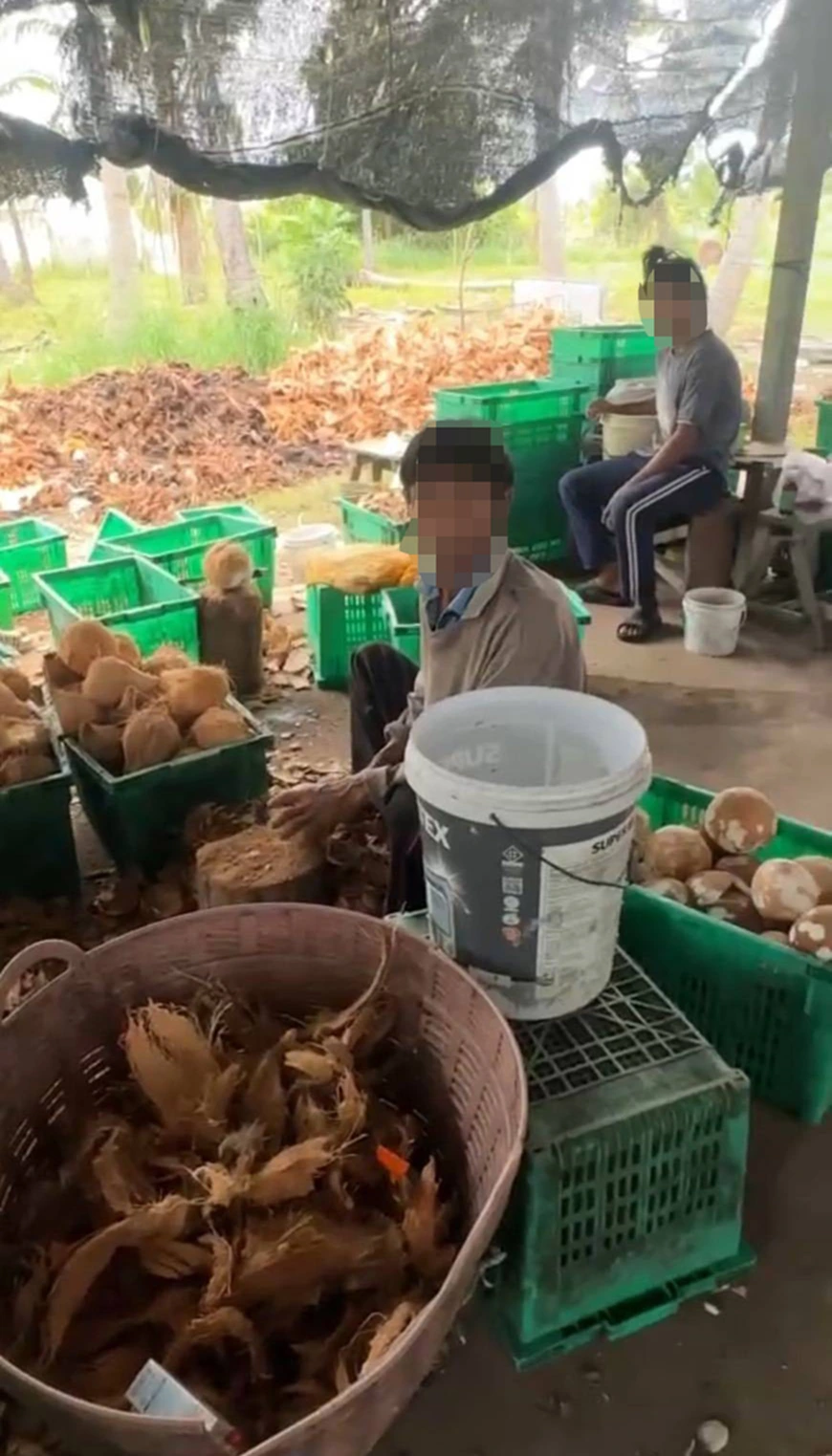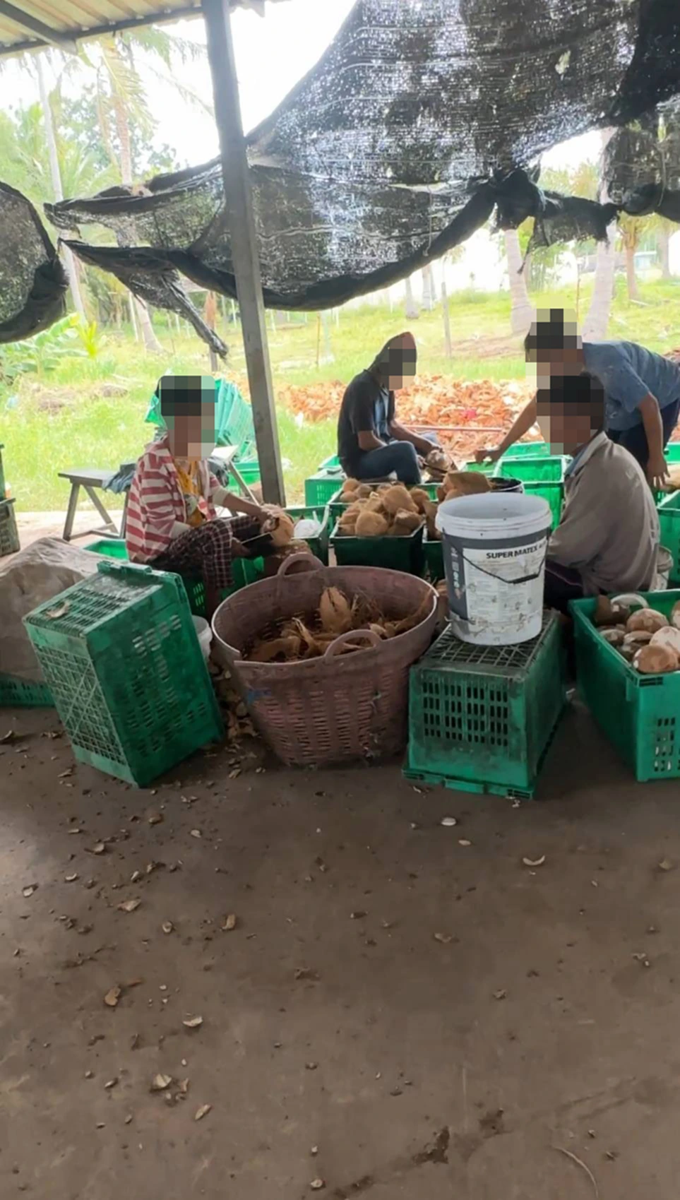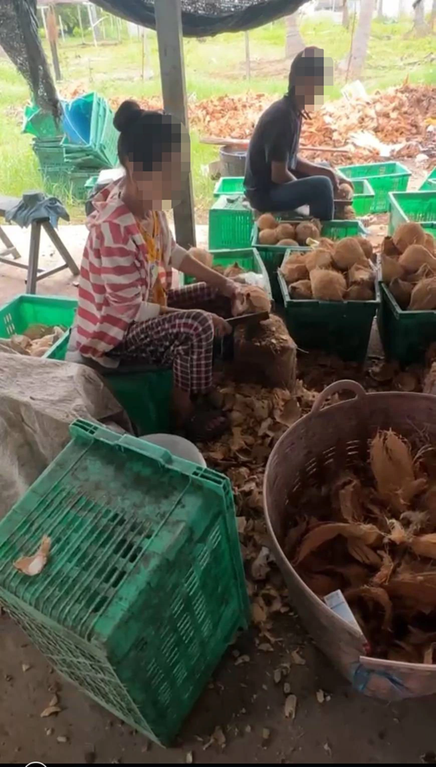 วันที่ 20 พ.ย. 2568 เจ้าหน้าที่สำนักงานจัดหางานจังหวัดประจวบคีรีขันธ์ ร่วมกับเจ้าหน้าที่สำนักการข่าว กอ.รมน. ลงพื้นที่ตรวจสอบสถานประกอบการและการทำงานของคนต่างด้าวในพื้นที่อำเภอเมืองประจวบฯ โดยเมื่อเดินทางถึงโรงงานทำมะพร้าวขาว บ้านเลขที่ 7/1 หมู่ 1 ตำบลเกาะหลัก พบแรงงานลักษณะคล้ายคนต่างด้าวกำลังกะเทาะกะลามะพร้าวอยู่ภายในล้ง เจ้าหน้าที่จึงเข้าตรวจสอบเอกสารประจำตัว และพบว่าคนต่างด้าวจำนวน 3 รายไม่มีใบอนุญาตทำงาน และทำงานมาแล้วประมาณ 7 วัน ตั้งแต่เวลา 09.00–16.00 น. ได้ค่าจ้างกิโลกรัมละ 3 บาท เฉลี่ยวันละ 200 บาท โดยมีนางสาวเอ (นามสมมุติ) เป็นนายจ้าง
