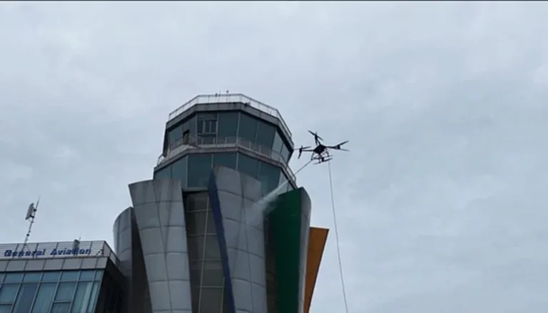 (50 ปีสัมพันธ์ไทย-จีน) สนามบินหูเป่ยใช้ ‘โดรนแม่บ้าน’ ฉีดล้างอาคาร