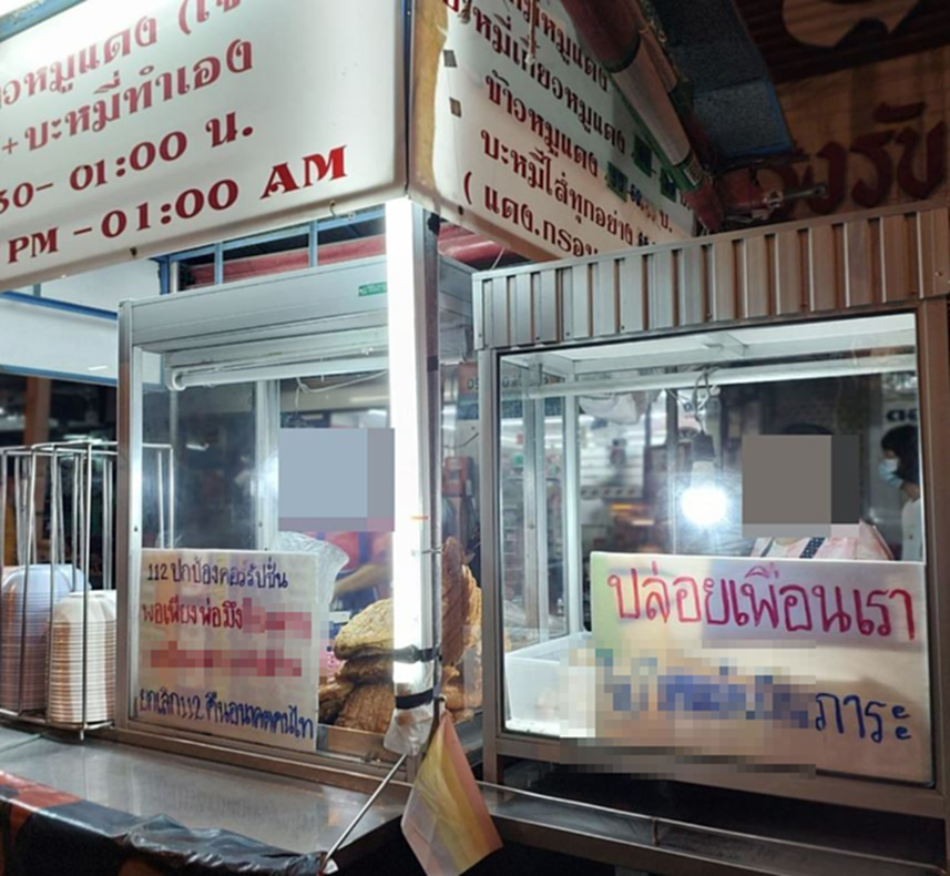 เมื่อวันที่ 20 พฤศจิกายน ที่ศาลอาญาพระโขนง พนักงานอัยการได้สั่งฟ้องคดีของ “เจ๊จวง” (สงวนชื่อสกุล) อายุ 54 ปี และ “เจ๊เทียม” (สงวนชื่อสกุล) อายุ 59 ปี สองแม่ค้าขายบะหมี่-ก๋วยเตี๋ยวย่านบางนา และเป็นแนวร่วมม็อบ 3 นิ้ว ในข้อหา “หมิ่นประมาทกษัตริย์ฯ” ตามประมวลกฎหมายอาญา มาตรา 112 จากการติดป้ายไว้บริเวณหน้าร้าน ซึ่งมีเนื้อหาเกี่ยวกับการยกเลิกมาตรา 112, จาบจ้วงสถาบันพระมหากษัตริย์ และเรียกร้องให้ “ปล่อยเพื่อนเรา” จำนวน 2 ป้าย เมื่อวันที่ 18 มกราคม 2566