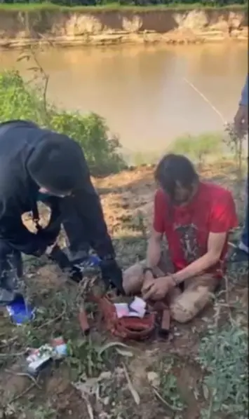 เจ้าหน้าที่ตำรวจชุดจับกุมจึงได้เดินทางไปตรวจสอบบ้านหลังดังกล่าว เมื่อไปถึงพบนายดนัย (สงวนนามสกุล) อายุ 39 ปี ที่อยู่ ต.สันทรายงาม อ.เทิง จ.เชียงราย ยืนอยู่บริเวณหน้าบ้านดังกล่าว ท่าทางมีพิรุธ ลักษณะเหมือนมีสิ่งของผิดกฎหมาย เมื่อเห็นเจ้าหน้าที่ตำรวจได้วิ่งหลบหนี โดยผู้ต้องสงสัยได้กระโดดลงแม่น้ำอิงและว่ายน้ำข้ามไปอีกฝั่ง ซึ่งแม่น้ำบริเวณดังกล่าวมีความกว้างประมาณ 50 เมตร พอข้ามไปได้ก็หลบซ่อนอยู่ตามพงหญ้าริมแม่น้ำ แต่เจ้าหน้าที่ตำรวจไม่ละความพยายาม ได้ยืมรถมอเตอร์ไซค์ของชาวบ้านที่อยู่ใกล้บริเวณดังกล่าว แล้วขับข้ามสะพานไปหาตรงบริเวณที่ชายดังกล่าวว่ายน้ำข้ามไป และได้รับความร่วมมือจากคนที่เลี้ยงวัวควายอยู่บริเวณนั้นช่วยชี้จุดที่นายดนัยใช้หลบซ่อน