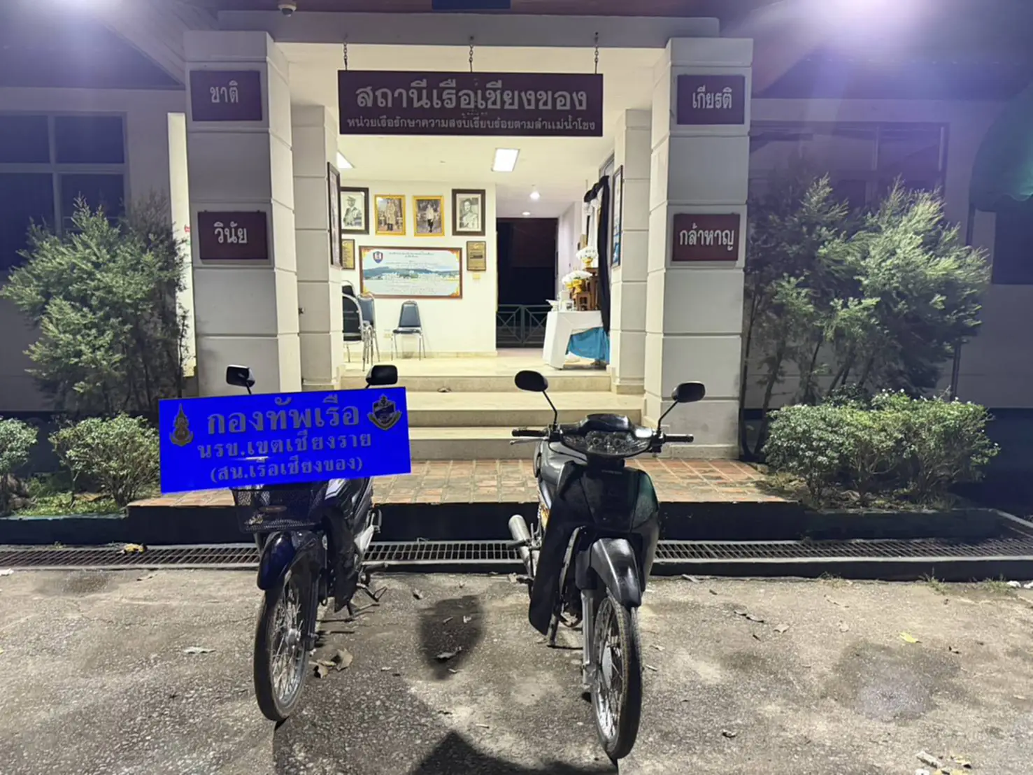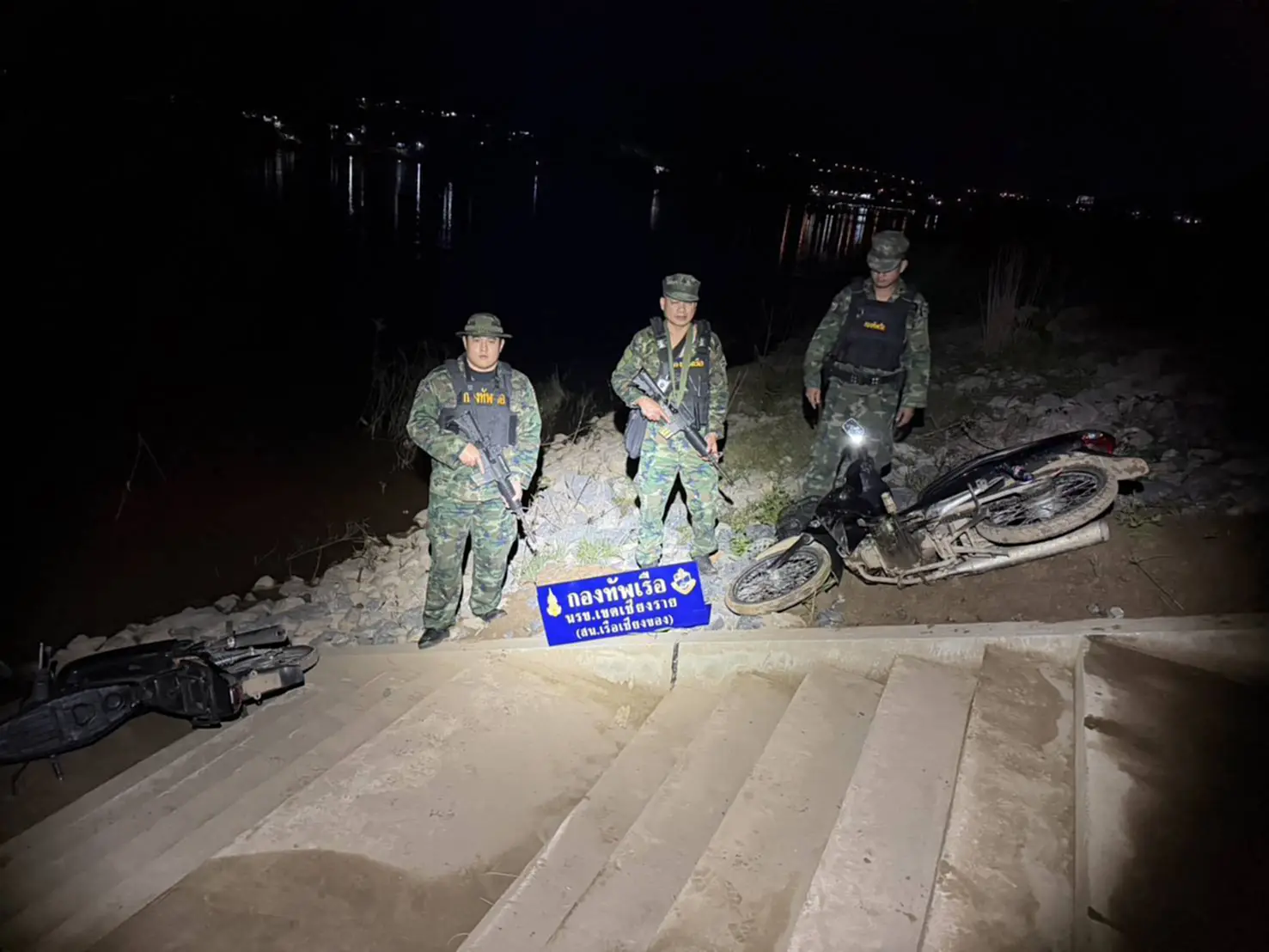 จนกระทั่ง ลาดตระเวณมาถึงพื้นที่บ้านหัวเวียง หมู่ 1 ต.เวียง อ.เชียงของ จ.เชียงราย ก็พบรถมอเตอร์ไซค์ จำนวน 2 คัน ถูกนำมาไว้ที่ตรงบันไดริมแม่น้ำโขง ตรงข้ามท่าเรือห้วยทรายของ สปป.ลาว โดยทิ้งรถไว้ลักษณะตะแคงข้าง คาดว่าจะเป็นกลุ่มขบวนการลักลอบขนย้ายรถข้ามชายแดนโดยไม่ผ่านกระบวนการทางศุลกากร แต่ไม่พบตัวกลุ่มผู้ก่อเหตุแต่อย่างได