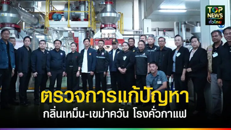 รมช.อุตสาหกรรมลงพื้นที่บางปะกง ตรวจติดตามการแก้ปัญหากลิ่นเหม็นและเขม่าควันจากโรงคั่วกาแฟ