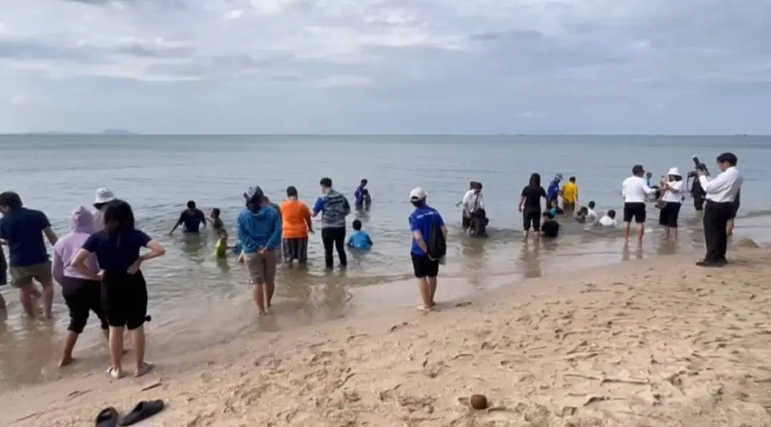 นายกเทศมนตรีเมืองอ่างศิลาควักงบประมาณส่วนตัวดูแลคณะเด็กพิการทางสายตาที่ร้องขอครั้งหนึ่งในชีวิตอยากเอาขาจุ่มน้ำทะเลบางแสน ที่ชายหาดบางแสน ตำบลแสนสุข อำเภอเมือง จังหวัดชลบุรี