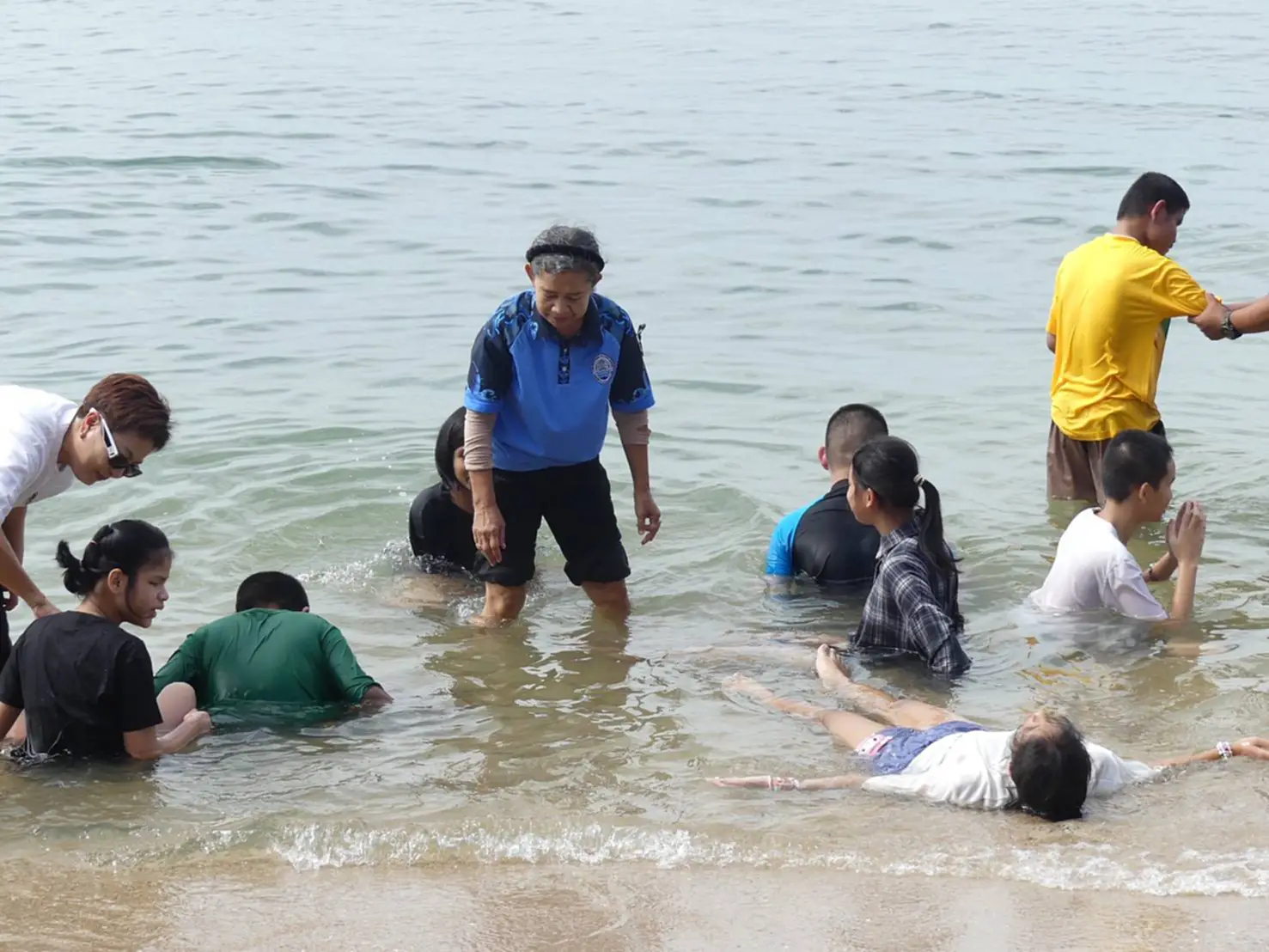 นายกเทศมนตรีเมืองอ่างศิลาควักงบส่วนตัวดูแลคณะเด็กพิการทางสายตา พาเอาขาจุ่มน้ำทะเลบางแสนตามความฝันครั้งหนึ่งในชีวิต