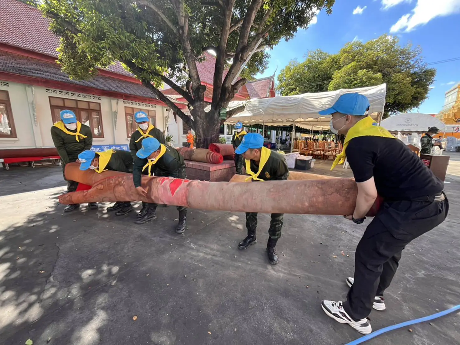 เมื่อวันที่ 21 พฤศจิกายน 2568 เวลา 13.30 น. พลตรี กวิน ยาวิชัย ผู้บัญชาการมณฑลทหารบกที่ 32/ผู้อำนวยการศูนย์อำนวยการจิตอาสาพระราชทาน มณฑลทหารบกที่ 32 มอบหมายให้ พันเอก ชยุต จันทะวงค์ รองเสนาธิการ มณฑลทหารบกที่ 32 นำกำลังพลจิตอาสาพระราชทาน และ นศท.จิตอาสาพระราชทาน จำนวน 40 นาย ร่วมกิจกรรมจิตอาสาพัฒนาปรับปรุงภูมิทัศน์ จัดระเบียบพระอุโบสถ เพื่อเตรียมการจัดพิธีอัญเชิญฉัตรขาว 7 ชั้น ประดับเหนือพระเศียรพระเจ้าตนหลวง พระพุทธปฏิมาประธานพระอุโบสถ ในวันที่ 23 พฤศจิกายน 2568 ณ วัดพระแก้วดอนเต้าสุชาดาราม พระอารามหลวง อ.เมือง จ.ลำปาง