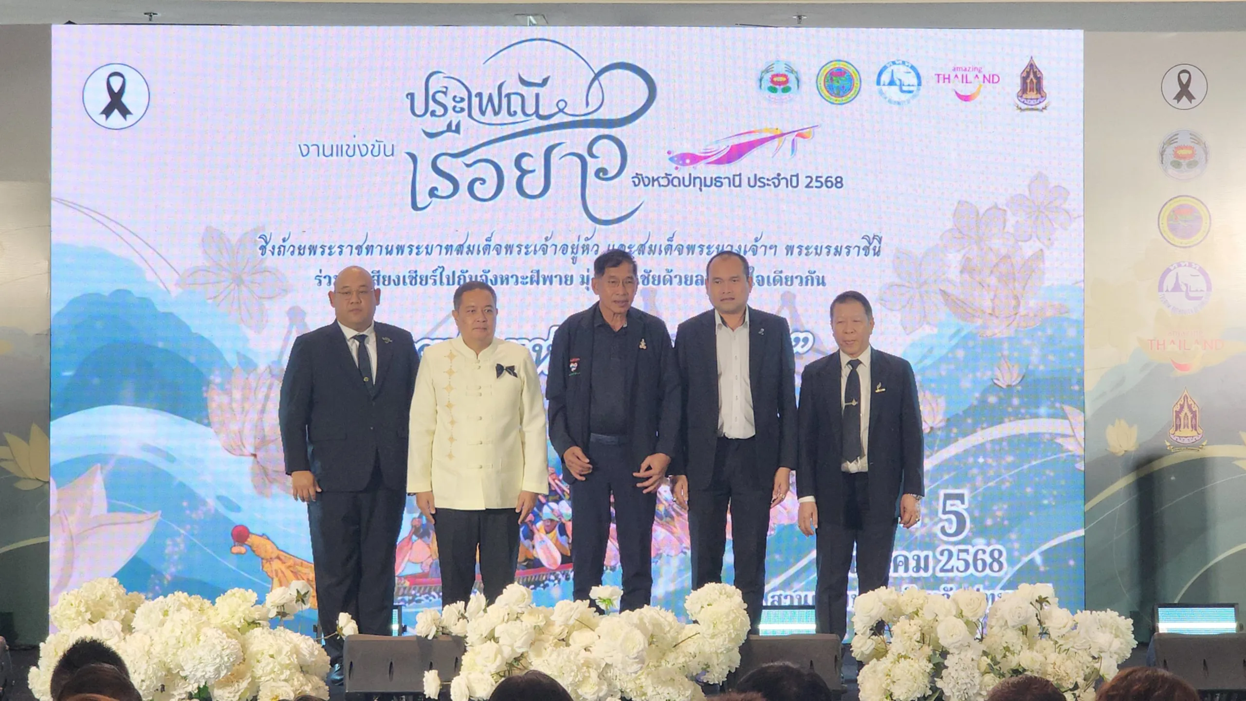เมื่อเวลา 13.30 น. วันที่ 21 พฤศจิกายน 2568 บริเวณลาน ZPELL ชั้น G ศูนย์การค้าฟิวเจอร์พาร์ค รังสิต นายเอกวิทย์ มีเพียร ผู้ว่าราชการจังหวัดปทุมธานี พร้อมด้วย พลตำรวจโท คำรณวิทย์ ธูปกระจ่าง นายกองค์การ บริหารส่วนจังหวัดปทุมธานี นายสหรัฐ  โพธิโต รองผู้อำนวยการ สำนักงานการท่องเที่ยวแห่งประเทศไทย (ททท.) และ ร.ต.อ.ดร.ตรีลุพธ์ ธูปกระจ่าง นายกเทศมนตรีนครรังสิต ร่วมกันแถลงข่าว การจัดงานแข่งขัน เรือยาวประเพณี จังหวัดปทุมธานี ประจำปี 2568 สายน้ำ แห่งความภักดี ชิงถ้วยพระราชทาน พระบาทสมเด็จพระเจ้าอยู่หัว และ สมเด็จพระนางเจ้าฯ พระบรมราชินี ในวันที่ 3 – 5 ธันวาคม  ณ ริมแม่น้ำเจ้าพระยา สวนเทพปทุม อำเภอเมืองปทุมธานี จังหวัดปทุมธานี