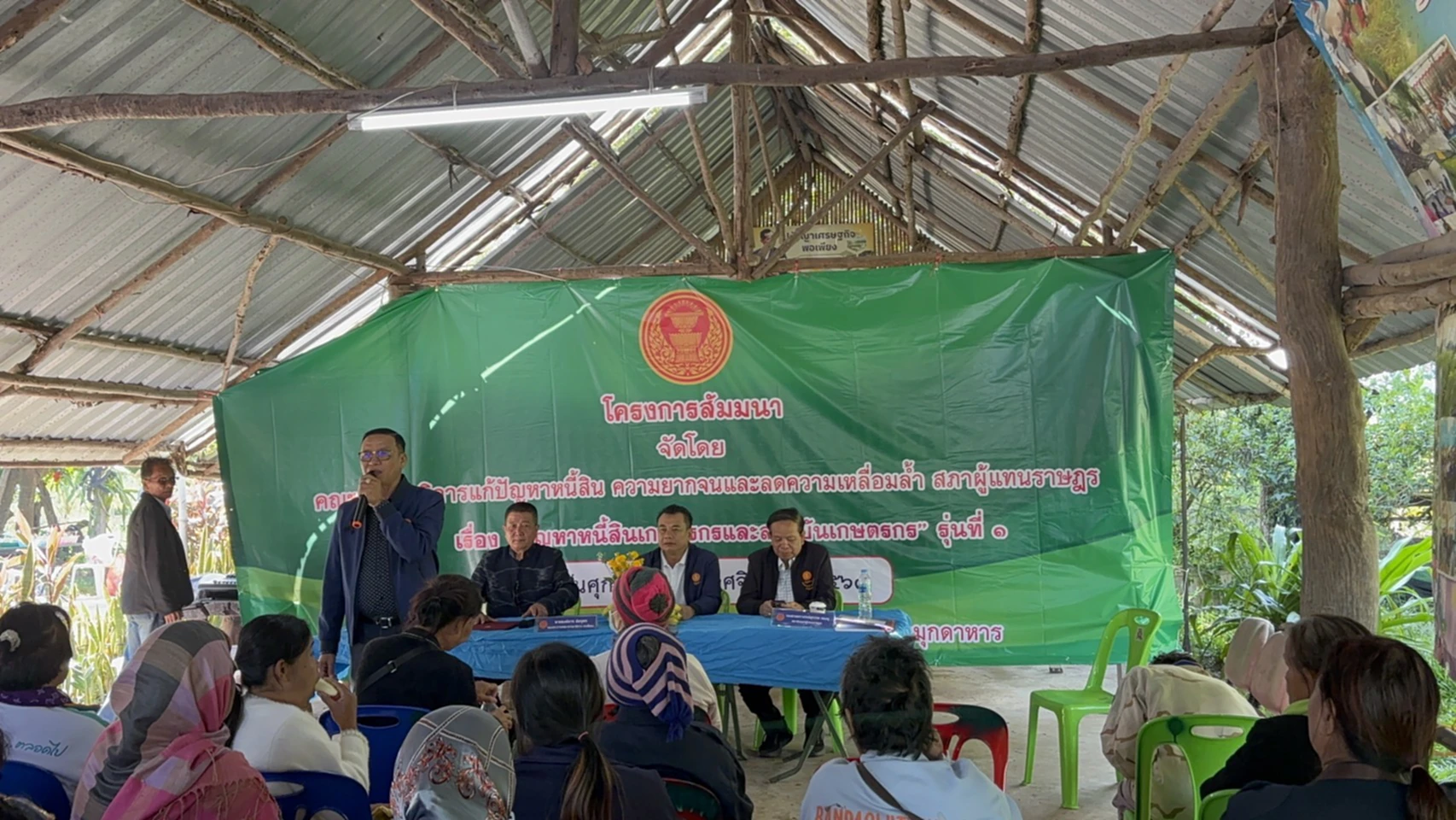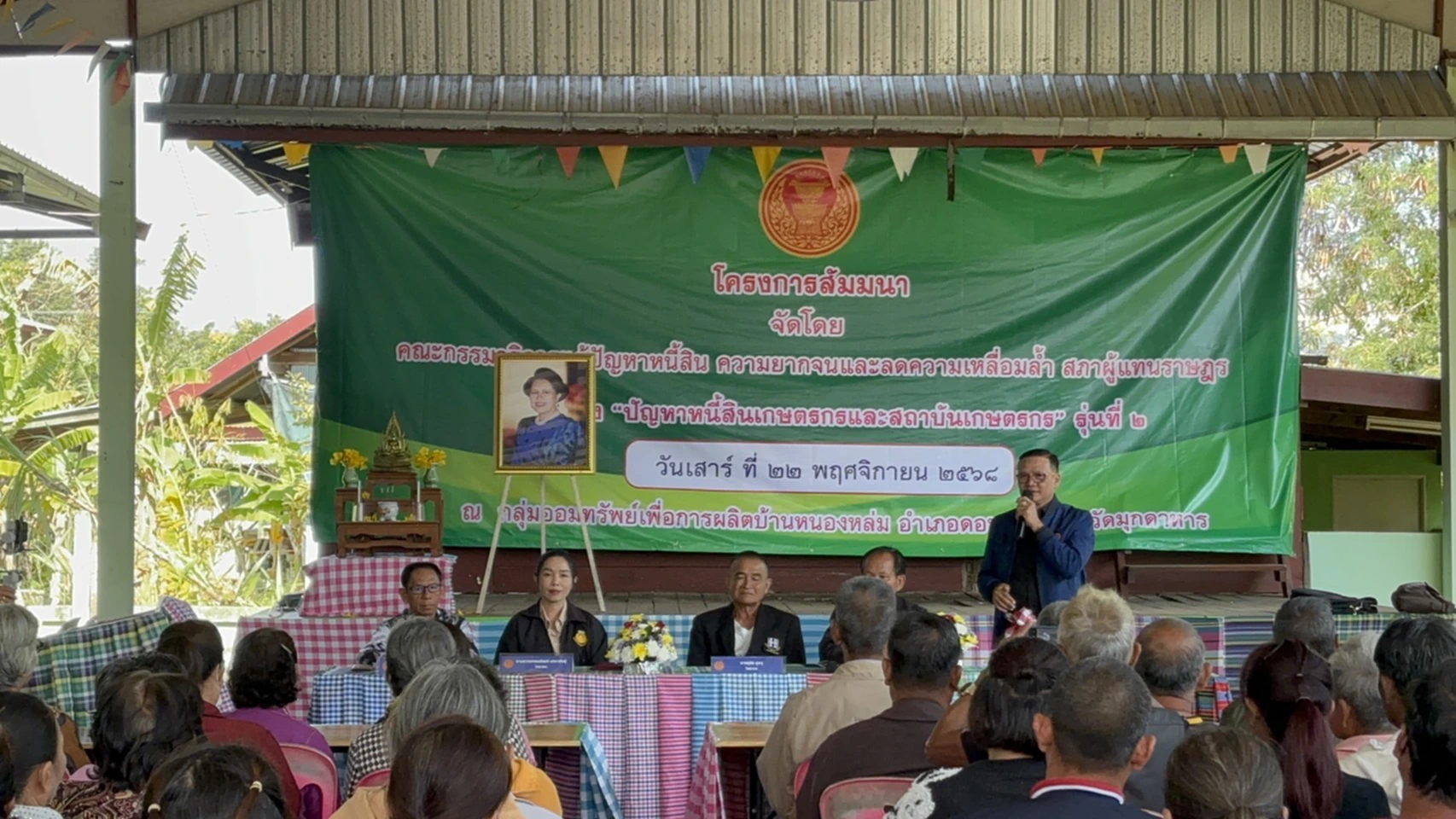วันที่ 21 -22 พฤศจิกายน 2568 ณ กลุ่มเกษตรกรก้าวหน้า อำเภอนิคมคำสร้อย และ อำเภอดอนตาล จังหวัดมุกดาหาร คณะกรรมาธิการแก้ปัญหาหนี้สิน ความยากจน และลดความเหลื่อมล้ำ สภาผู้แทนราษฎร จัดสัมมนาเชิงพื้นที่หัวข้อ “ปัญหาหนี้สินเกษตรกรและสถาบันเกษตรกร รุ่นที่ 1” เพื่อรวบรวมข้อมูลจากผู้ได้รับผลกระทบโดยตรงก่อนนำไปกำหนดแนวทางเชิงนโยบาย การสัมมนาครั้งนี้มี นายองค์การ ชัยบุตร รองประธานคณะกรรมาธิการ คนที่สอง เป็นประธานในพิธี นายชาตรี หล้าพรหม โฆษกคณะกรรมาธิการ พร้อมด้วยผู้แทนหน่วยงานภาครัฐและเกษตรกรจำนวนมากร่วมแสดงความคิดเห็น