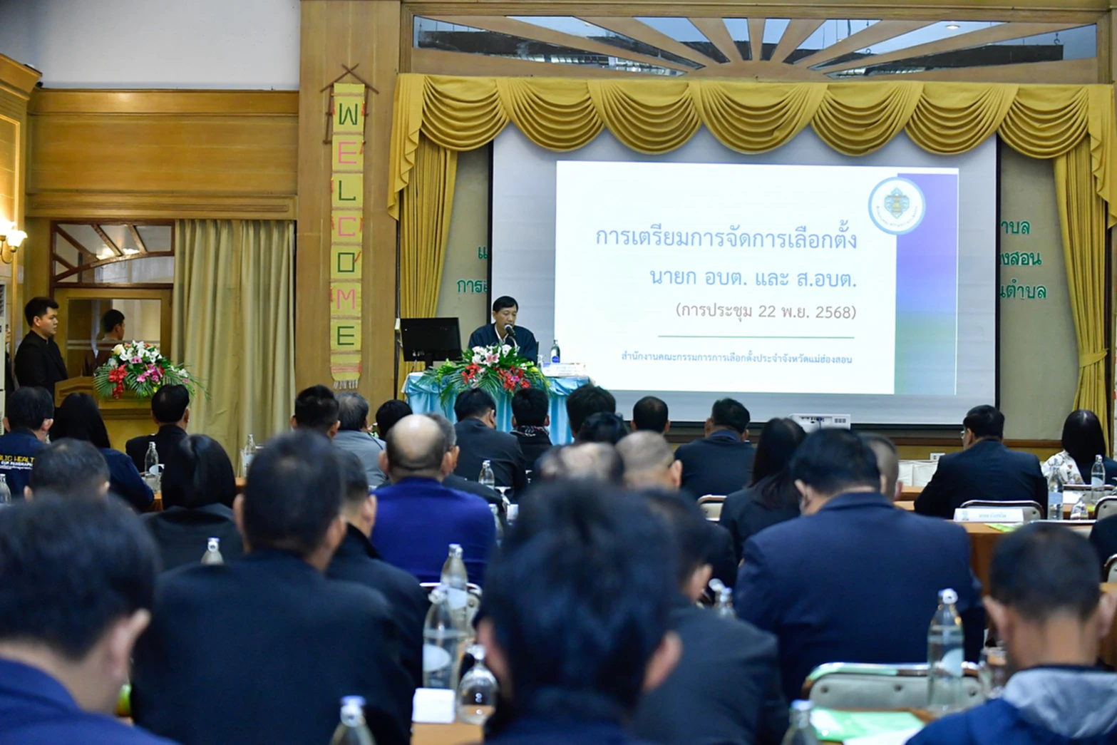 วันที่ 22 พฤศจิกายน 2568 เวลา 09.30 น. ณ ห้องประชุมโรงแรมอิมพีเรียลธารา แม่ฮ่องสอน รีสอร์ท นายณัฐเศรษฐ์ ราชไชยา ผู้อำนวยการการเลือกตั้งประจำจังหวัดแม่ฮ่องสอน เป็นประธานเปิด การประชุมคณะกรรมการการเลือกตั้งประจำองค์การบริหารส่วนตำบล และผู้อำนวยการการเลือกตั้งประจำองค์การบริหารส่วนตำบล การเตรียมการเลือกตั้งสมาชิกสภาองค์การบริหารส่วนตำบลและนายกองค์การบริหารส่วนตำบล เพื่อเตรียมความพร้อมการเลือกตั้งที่กำลังจะมาถึง