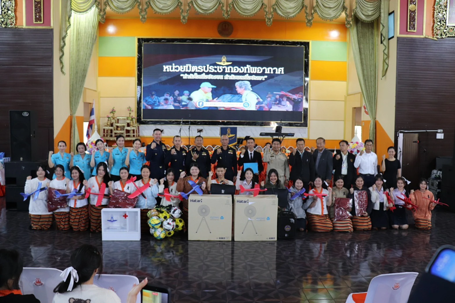 – การบรรเทาทุกข์/ช่วยเหลือ: มอบพระบรมฉายาลักษณ์ ตู้ยาพร้อมยาสามัญประจำบ้าน ผ้าห่มกันหนาว พัดลมอุตสาหกรรม ลำโพงเคลื่อนที่ วารสารของกองทัพอากาศ อุปกรณ์การศึกษา และอุปกรณ์กีฬา ให้แก่นักเรียน