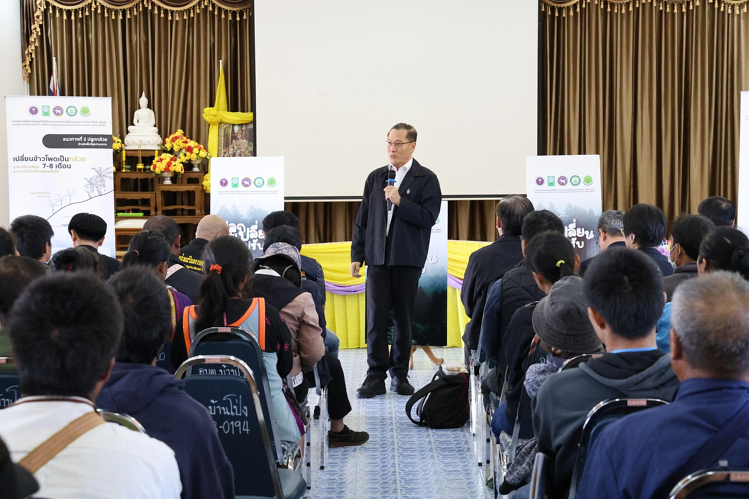 วันที่ 22 พฤศจิกายน 2568 ที่องค์การบริหารส่วนตำบลบ้านโป่ง อ.เวียงป่าเป้า จ.เชียงราย คณะสัตวศาสตร์และเทคโนโลยี มหาวิทยาลัยแม่โจ้ ร่วมกับ สำนักงานการวิจัยแห่งชาติ (วช.) ลงพื้นที่จัดโครงการ “การปรับเปลี่ยนวัสดุเหลือใช้ทางการเกษตรเพื่อลดจุดความร้อน (Hot Spot) และฝุ่นละอองขนาดเล็กจิ๋ว (PM2.5) สู่ห่วงโซ่อุปทานใหม่ในอุตสาหกรรมการผลิตปศุสัตว์” ภายใต้ชื่อว่า “ปลูก เปลี่ยน ปรับ” โดยมีนายวีระศักดิ์ โควสุรัตน์ ประธาน Promoting Committee (PD) อดีตรัฐมนตรีว่าการกระทรวงท่องเที่ยวและกีฬา เป็นประธานพิธีเปิดโครงการฯ พร้อมด้วยนายพงศ์ศักดิ์ เพชรคงแก้ว นายอำเภอเวียงป่าเป้า นางสาวเสาวนีย์ มุ่งสุจริตการ รองผู้อำนวยการสำนักงานการวิจัยแห่งชาติ (วช.) นายครรชิต พุทธโกษา ผู้ทรงคุณวุฒิ วช. ตลอดจนผู้บริหารคณะสัตวศาสตร์และเทคโนโลยี มหาวิทยาลัยแม่โจ้ หัวหน้าส่วนราชการ หน่วยงานที่เกี่ยวข้อง และกลุ่มเกษตรกรในพื้นที่ อ.เวียงป่าเป้า เข้าร่วมกิจกรรมในการที่จะร่วมกันปรับเปลี่ยนแนวคิดวิธีการกำจัดวัสดุเหลือใช้อย่างถูกต้อง นำไปสู่การลดเผา ลดค่าฝุ่นละอองขนาดเล็ก PM2.5 ในพื้นที่ อ.เวียงป่าเป้า ได้อย่างยั่งยืน