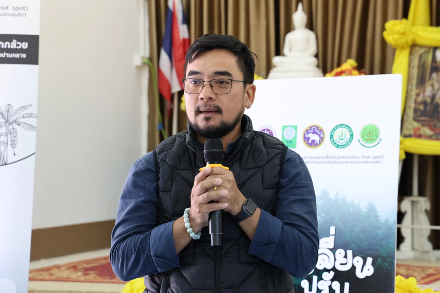 ด้านนายพงศ์ศักดิ์ เพชรคงแก้ว นายอำเภอเวียงป่าเป้า กล่าวว่า วันนี้ต้องขอบคุณทางมหาลัยวิทยาลัยแม่โจ้ กับทีมงานที่มาช่วยในการแก้ไขปัญหาเรื่อง PM 2.5 อย่างยั่งยืนในพื้นที่ อ.เวียงป่าเป้า ซึ่งคาดหวังว่าจะเป็นพื้นที่ต้นแบบในการแก้ไขปัญหาเรื่องของ PM 2.5 วันนี้เรามาพูดเรื่องของการปรับเปลี่ยนวิถีชีวิตดั้งเดิมซึ่งค่อยๆ ปรับเปลี่ยนจากการปลูกข้าวโพดมาเป็นการปลูกกาแฟ หรือว่าพืชทางเลือกอื่นๆ เช่น กล้วย กาแฟ อโวคาโด เป็นต้น เพื่อเสริมสร้างรายได้เพราะฉะนั้นวันนี้เป็นโอกาสของคนพี่น้องชาว อ.เวียงป่าเป้า แล้ว รวมทั้งโอกาสของพี่น้องใน จ.เชียงราย ขอให้ทุกฝ่ายร่วมมือกับนักวิชาการ ไม่ว่าจะมหาวิทยาลัยแม่โจ้ หรือมหาวิทยาลัยอื่นๆ องค์กรภาคเอกชน ที่จะสามารถปรับเปลี่ยนตรงนี้ได้คิดว่าปัญหาของควันไฟป่าเราจะหมดไปอย่างยั่งยืนถาวรอย่างแน่นอน
