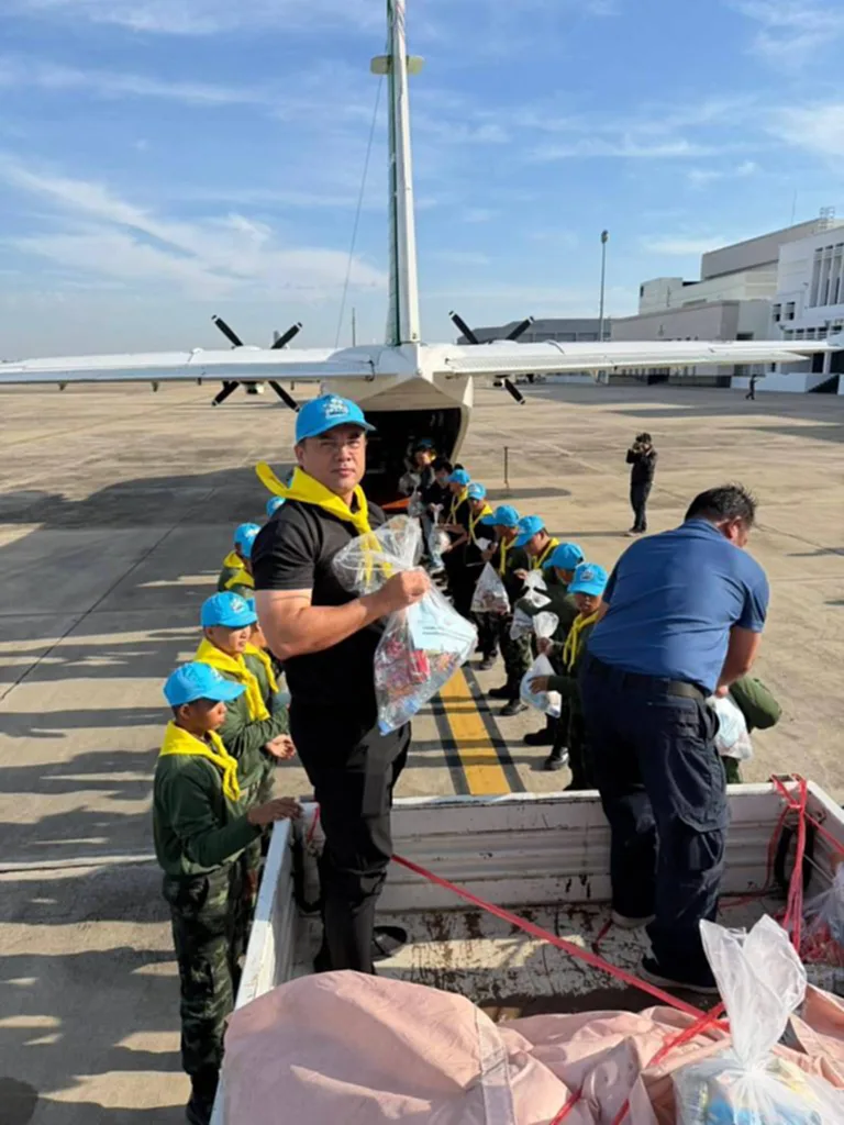 พร้อมเจ้าหน้าที่กรมฝนหลวงฯ ลำเลียงถุงยังชีพ กว่า 1,000 ชุดไปยัง อ.หาดใหญ่ จ.สงขลา เพื่อแจกจ่ายช่วยเหลือให้กับพี่น้องประชาชนที่ประสบอุทกภัยในพื้นที่ภาคใต้ จำนวน 2 เที่ยวบิน เที่ยวบินละ 2 ลำ ในเวลา 09.00 น. และ 11.00น.