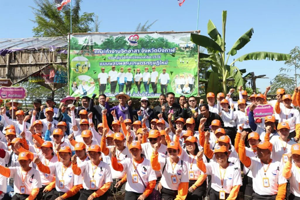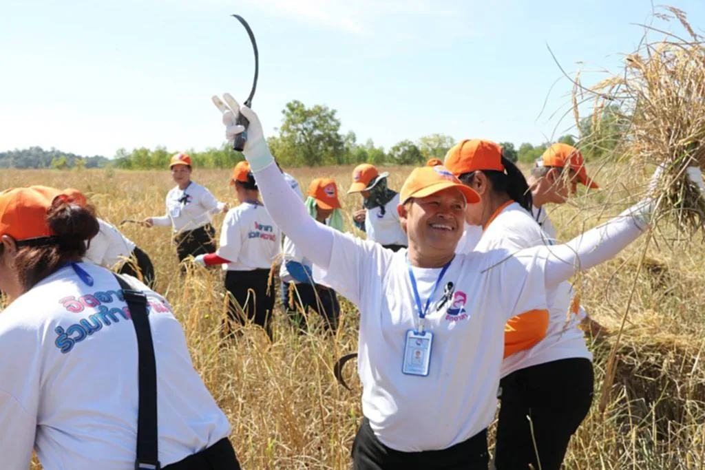 วันที่ 23 พฤศจิกายน 2568 ณ แปลงนาสาธิต 15 ไร่ แบบผสมผสานเกษตรทฤษฎีใหม่ บ้านโพธิ์น้อย ตำบลท่ากกแดง อำเภอเซกา จังหวัดบึงกาฬ คณะทำงานจิตอาสาจังหวัดบึงกาฬ จัดกิจกรรม “ลงแขกเกี่ยวข้าว” เพื่อสืบสานภูมิปัญญาท้องถิ่น ส่งเสริมความสามัคคีในชุมชน และอนุรักษ์วิถีเกษตรดั้งเดิมให้คงอยู่สืบไป โดยมี นายนคร ศิริปริญญานันท์ รองผู้ว่าราชการจังหวัด รักษาราชการแทนผู้ว่าราชการจังหวัดบึงกาฬ เป็นประธานเปิดงาน