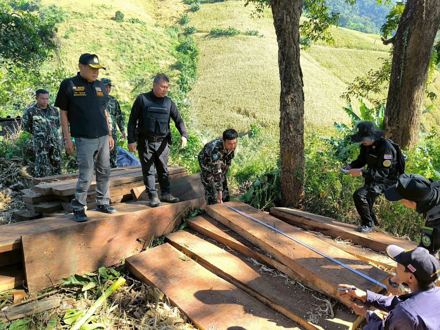 ตาก ผอ.สจป.ที่ 4 (ตาก) ร่วมตรวจยึดไม้ประดู่แปรรูปของกลาง 32 แผ่น