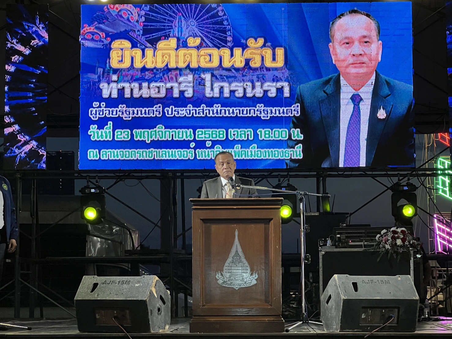 วันที่ 23 พ.ย.68 ที่บริเวณลานกิจกรรมเมืองทองธานี อำเภอปากเกร็ด จังหวัดนนทบุรี นายอารี ไกรนา ผู้ช่วยรัฐมนตรีประจำสำนักนายกรัฐมนตรี เป็นประธานในพิธีเปิดงาน”เมืองทอง Super Expo” ภายในงานมีกิจกรรมการแสดงสินค้าราคาถูกจากร้านอาหารชื่อดังในโลกโซเชียล นอกจากนี้ยังมี”สวนสนุกจากต่างประเทศ”ประกอบด้วย ชิงช้าสวรรค์ ความสูง 28 เมตร เฮอร์ริเคน ไวกิ้ง และอีกมากมาย