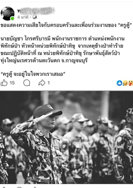 นายอรรถพล เจริญชันษา อธิบดีกรมอุทยานฯ มอบหมายหัวหน้าหน่วยงานในพื้นที่เข้าให้กำลังใจครอบครัวและสนับสนุนการจัดพิธีศพอย่างสมเกียรติเป็นการเร่งด่วน