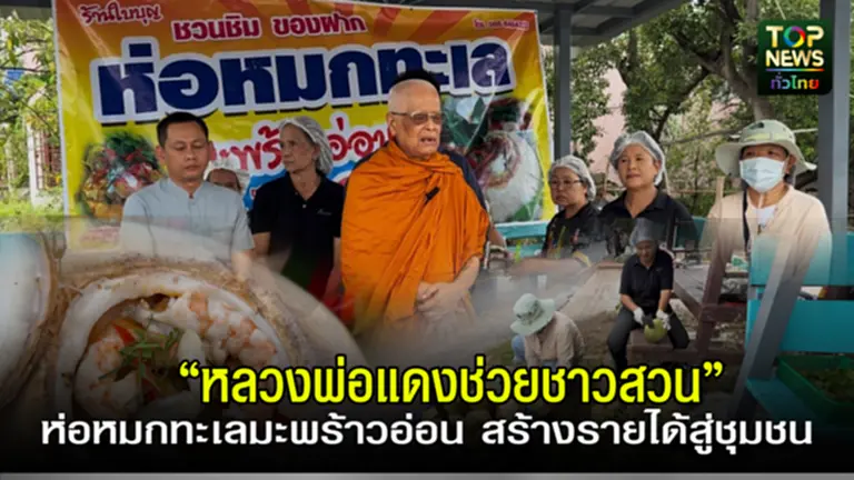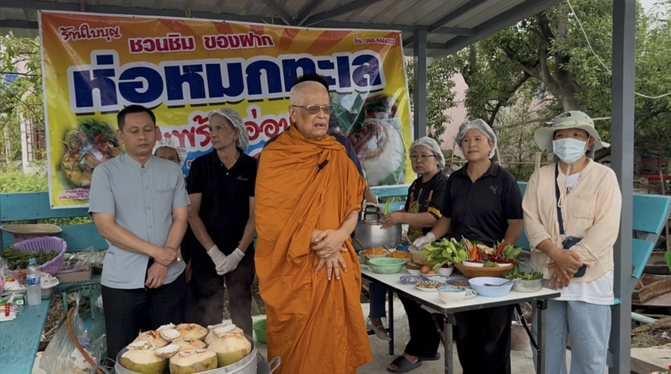 หลวงพ่อแดงยังไม่หยุดช่วยชาวสวนมะพร้าว–รับซื้อมะพร้าวน้ำหอมครั้งนี้เดินสายดอนหอยหลอดให้นักศึกษาผลิต “ห่อหมกทะเลมะพร้าวอ่อน” สร้างรายได้หมุนเวียนสู่ชุมชน