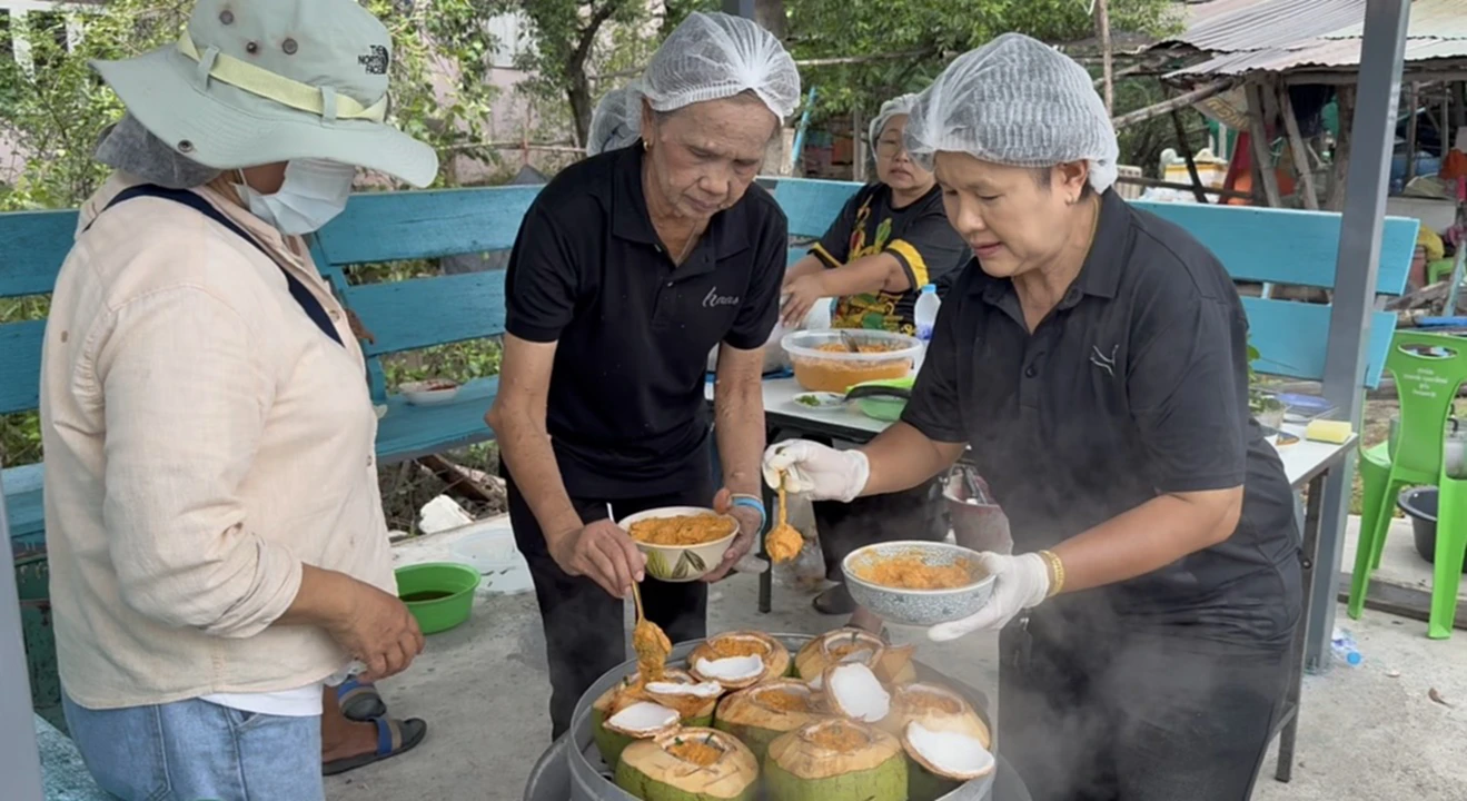 สมุทรสงครามช่วยชาวสวนมะพร้าวอ่อนทำห่อหมกทะเลมะพร้าวอ่อน” สร้างรายได้สู่ชุมชน