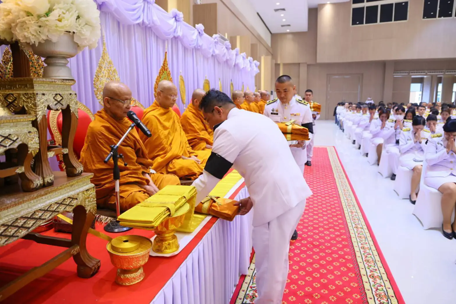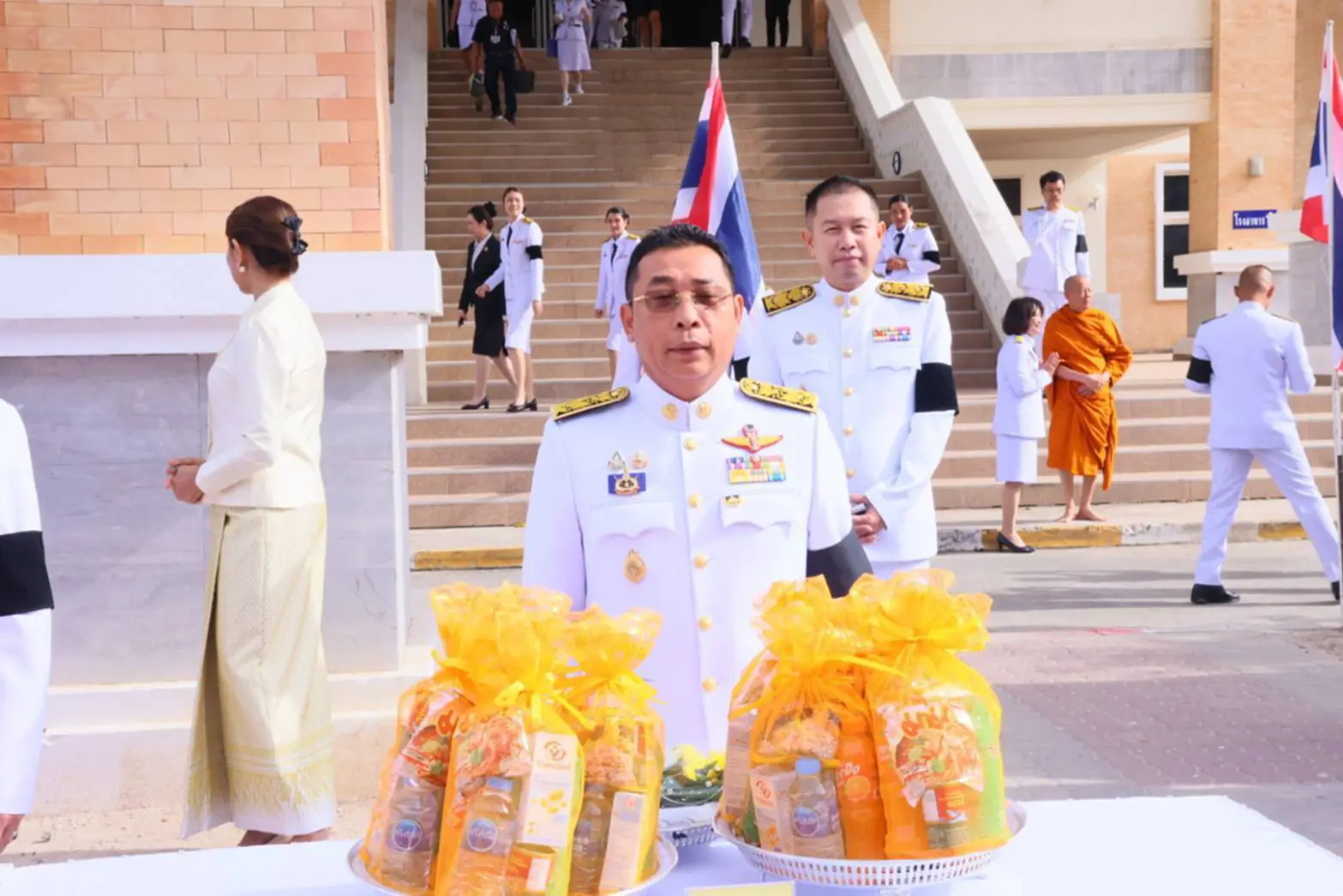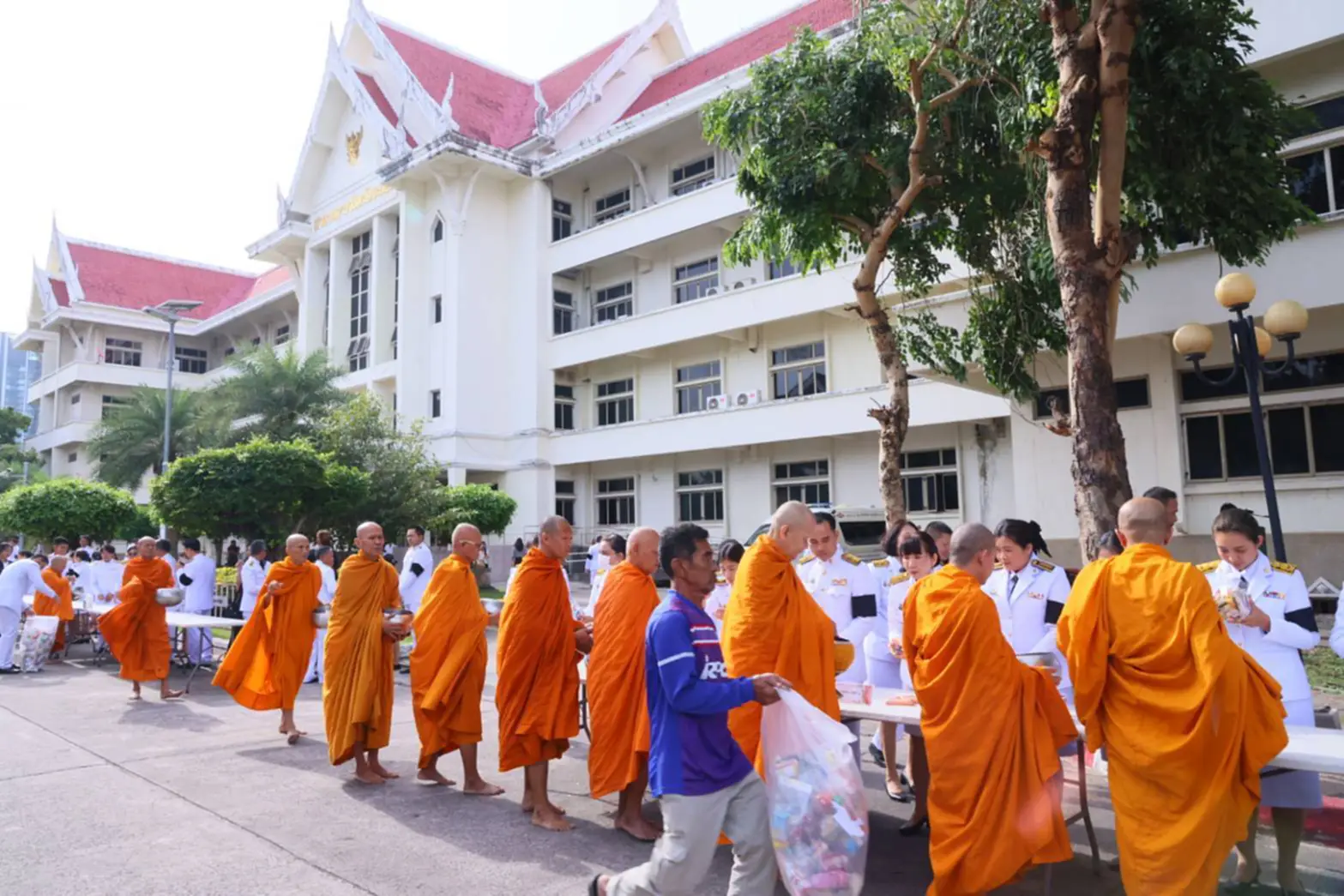 พร้อมนำหัวหน้าส่วนราชการจังหวัด ข้าราชการ ข้าราชการองค์กรปกครองส่วนท้องถิ่น และประชาชนชาวจังหวัดระยองทุกหมู่เหล่า ตักบาตรข้าวสารอาหารแห้งพระภิกษุสามเณร จำนวน 45 รูป เพื่อถวายเป็นพระราชกุศล
