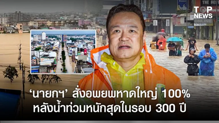 “นายกฯ อนุทิน” สั่งอพยพหาดใหญ่ 100% หลังน้ำท่วมหนักสุดในรอบ 300 ปี ย้ำอาหาร-น้ำต้องมีคุณภาพ กำชับลาดตระเวนตลอด 24 ชั่วโมง – Top News รายงาน