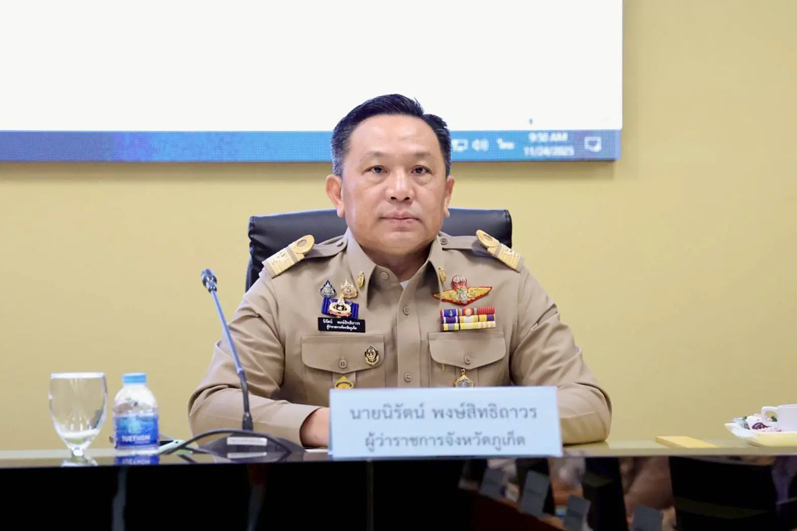 วันที่ 24 พ.ย. 2568 ที่ห้องประชุมเจ้าฟ้า ศาลากลางจังหวัดภูเก็ต นายนิรัตน์ พงษ์สิทธิถาวร ผู้ว่าราชการจังหวัดภูเก็ต เป็นประธานการประชุมเตรียมความพร้อมในการรับเสด็จพระบาทสมเด็จพระเจ้าอยู่หัว และสมเด็จพระนางเจ้าฯ พระบรมราชินี ในการเสด็จพระราชทานรางวัลแก่ผู้ชนะการแข่งขันเรือใบนานาชาติ “ภูเก็ตคิงส์คัพรีกัตต้าฯ ครั้งที่ 37” รวมทั้งการที่สมเด็จพระนางเจ้าฯ พระบรมราชินี จะทรงร่วมแข่งขันเรือใบทีมวายุ รุ่น IRC ZERO ณ โรงแรมบียอนด์ กะตะ อำเภอเมืองภูเก็ต.