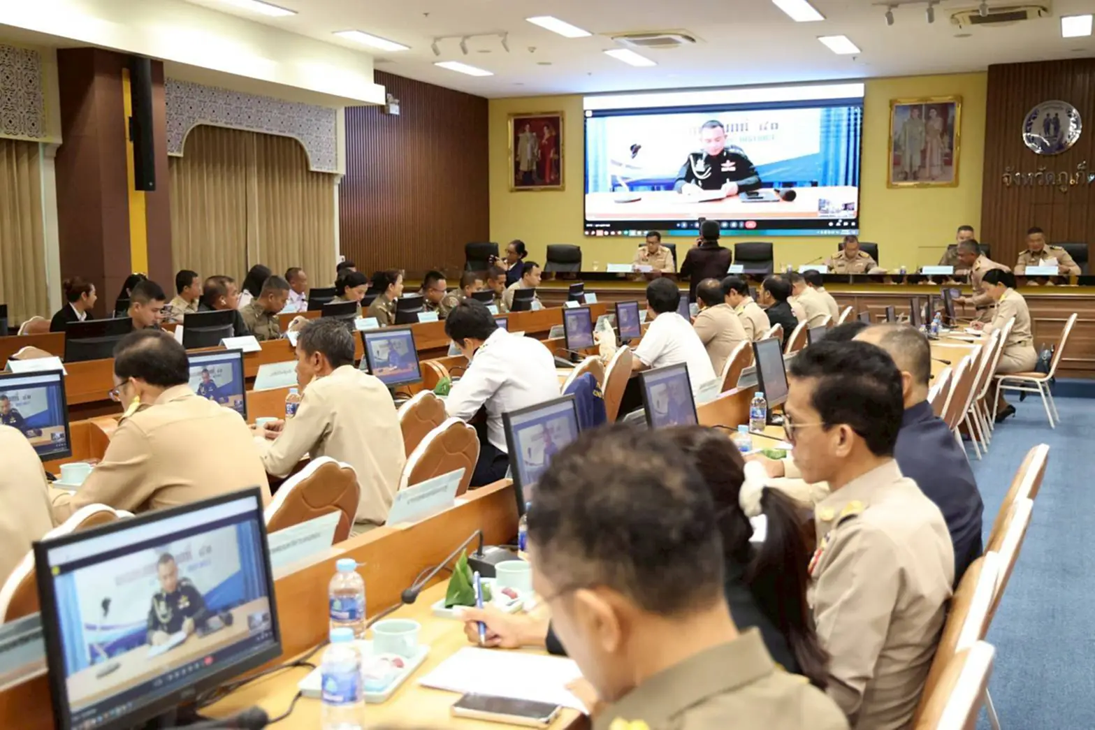 การประชุมมีรองผู้ว่าราชการจังหวัดภูเก็ต ผู้แทนตำรวจภูธร ผู้แทนทัพเรือภาคที่ 3 หน่วยงานภาครัฐ อปท. และภาคส่วนที่เกี่ยวข้องเข้าร่วม เพื่อร่วมซักซ้อมแนวทางปฏิบัติด้านความปลอดภัย การจราจร พิธีการ และการจัดพื้นที่ให้ประชาชนเฝ้ารับ–ส่งเสด็จฯ อย่างสมพระเกียรติ ผู้ว่าราชการจังหวัดได้กำชับให้ทุกหน่วยงานบูรณาการร่วมกัน ทั้งในงานด้านความปลอดภัย แพทย์ฉุกเฉิน การดูแลพื้นที่จัดงาน และการประชาสัมพันธ์ โดยได้จัดทำจุดรองรับประชาชนตลอดเส้นทางเสด็จฯ เพื่ออำนวยความสะดวกสูงสุด.