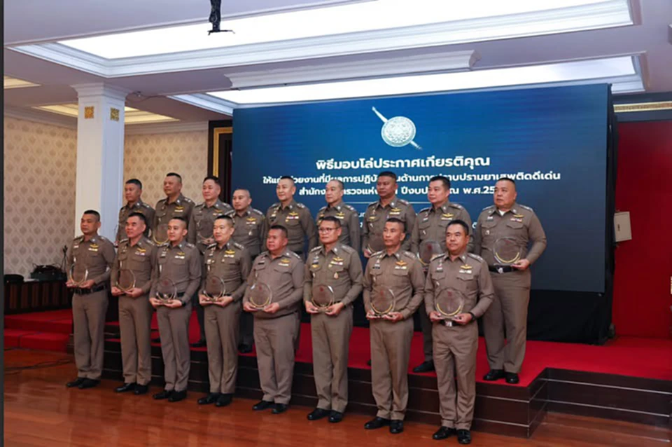 เมื่อวันที่ 24 พฤศจิกายน 2568 พล.ต.อ.กิตติ์รัฐ พันธุ์เพ็ชร์ ผู้บัญชาการตำรวจแห่งชาติ (ผบ.ตร.) เป็นประธานมอบโล่ประกาศเกียรติคุณให้แก่หน่วยงานที่มีผลการปฏิบัติงานด้านการปราบปรามยาเสพติดดีเด่น ของสำนักงานตำรวจแห่งชาติ ประจำปีงบประมาณ พ.ศ.2568