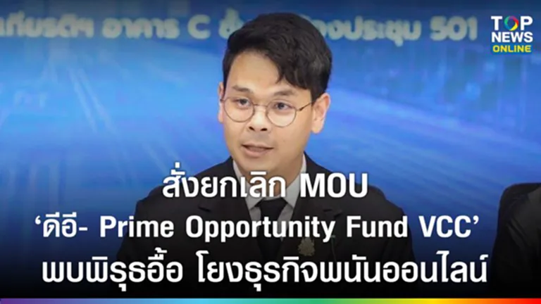 "ไชยชนก" สั่งยกเลิก MOU "ดีอี- Prime Opportunity Fund VCC" พบพิรุธโยงธุรกิจพนันออนไลน์