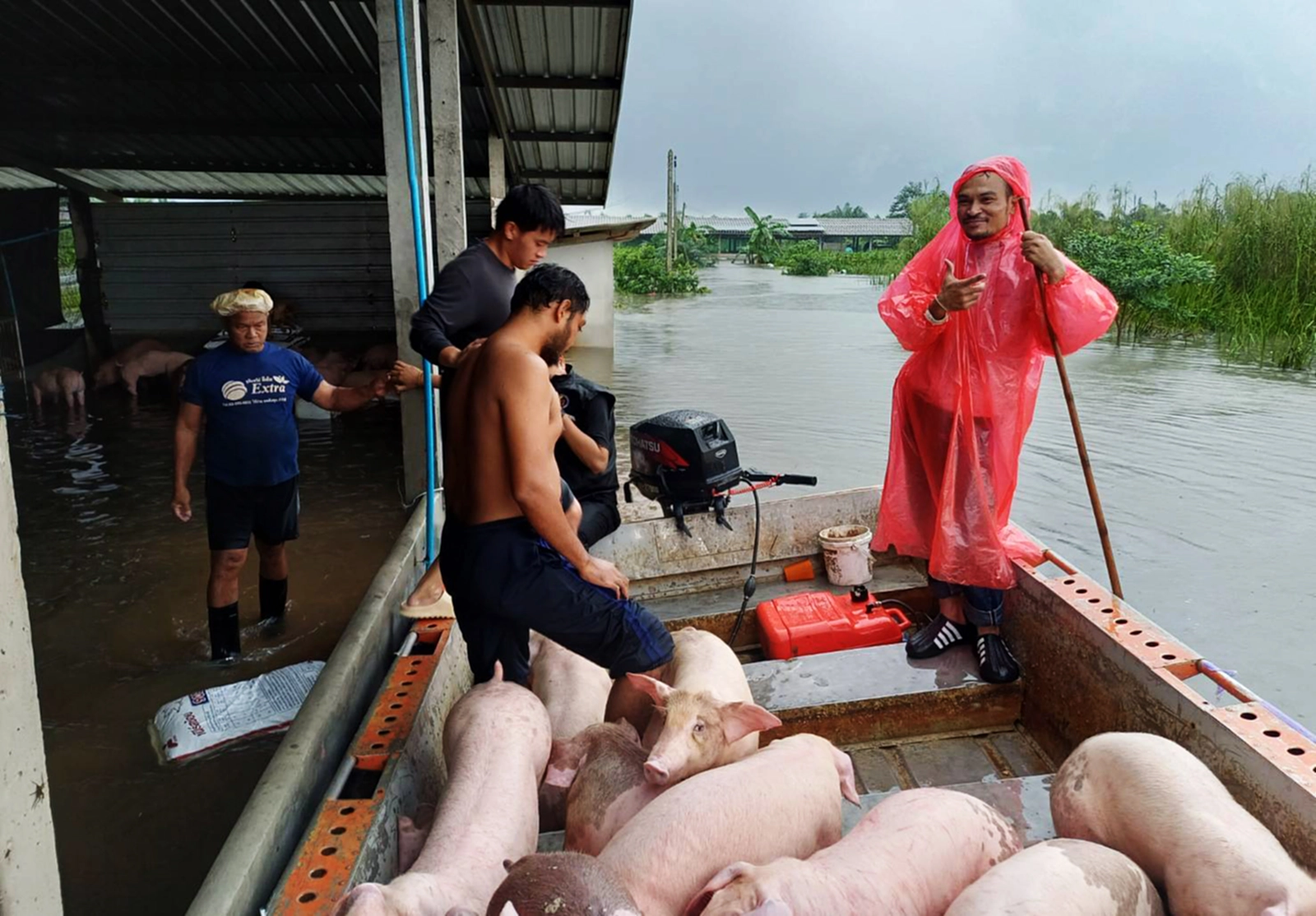 ด้านสำนักงานปศุสัตว์และประมงจังหวัดพัทลุง ระดมรถบรรทุกช่วยเคลื่อนย้ายหมูสุกรกว่า 550 ตัวและแม่พันธุ์กว่า 50 ตัวไปไว้ในที่ปลอดภัย พร้อมเตรียมหญ้าฟางช่วยเหลือเกษตรกรเกษตรกร นอกจากนี้ยังมีการนำฝูงควายน้ำไปยังที่ปลอดภัย แม้บางส่วนเสียชีวิตโดยเฉพาะลูกควายแรกเกิด