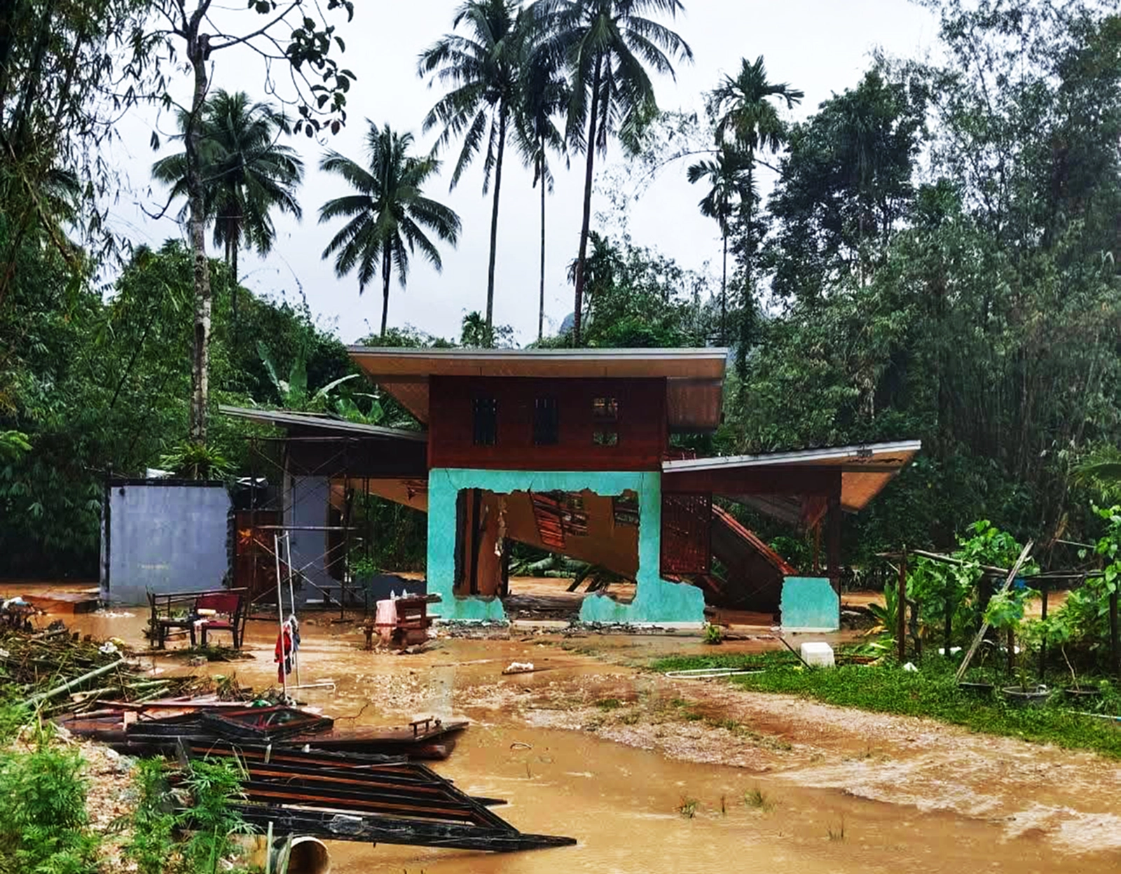น้ำป่าจากเขาบรรทัดพัดพาบ้านเรือนหลายหลังในอำเภอกงหราเสียหายทั้งหลัง ดินสไลด์เกิดขึ้นหลายจุดต้นไม้ล้มขวางถนน หน่วยงานท้องถิ่นและสมาชิกสภาจังหวัดเร่งให้ความช่วยเหลือผู้ประสบภัยอย่างเร่งด่วน ขณะที่เจ้าของบ้านระบุว่าสาเหตุน่าจะมาจากการสร้างคันคลองสูงขึ้น ทำให้น้ำหลากไหลวนพัดบ้านเสียหาย