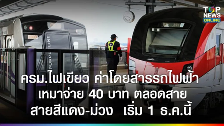 ครม.ไฟเขียว โครงการค่าโดยสารรถไฟฟ้า เหมาจ่าย 40 บาท ตลอดสายสีแดง-ม่วง เริ่ม 1 ธ.ค.นี้