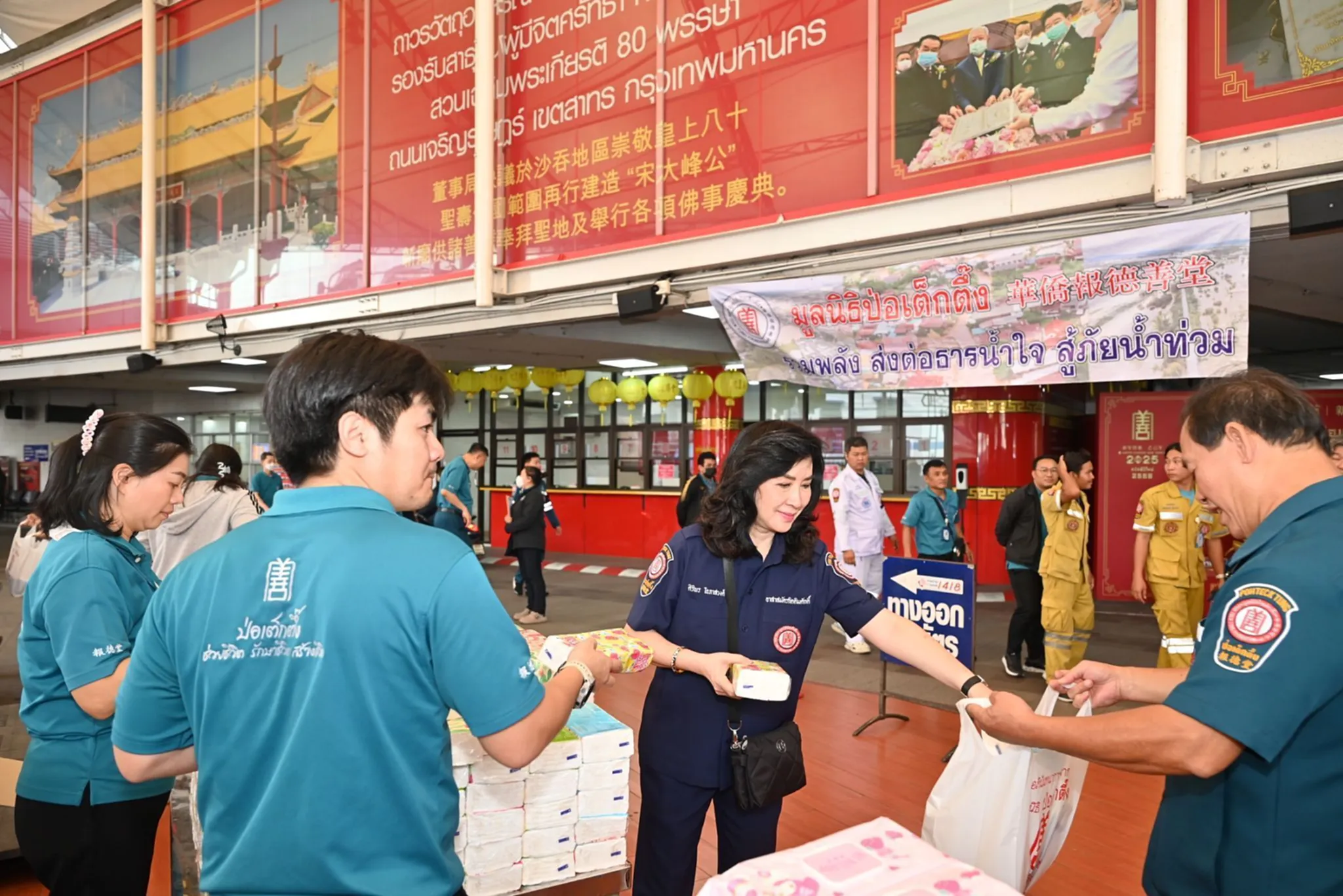 วันที่ 25 พฤศจิกายน 2568 มูลนิธิป่อเต็กตึ๊ง นำโดย นางศิริกุล โอภาสวงศ์ กรรมการและเลขาธิการ พร้อมด้วย นายอรัณย์ โตทวด ผู้จัดการใหญ่มูลนิธิฯ จัดทีมบรรเทาสาธารณภัย พร้อมอุปกรณ์ตอบโต้ภัยพิบัติ ชุด 2 สมทบทีมช่วยเหลือผู้ประสบภัยน้ำท่วมหาดใหญ่ โดยออกเดินทางแล้วตั้งแต่เช้าช่วงเช้าที่ผ่านมา พร้อมทั้งเปิดลานสำนักงานมูลนิธิป่อเต็กตึ๊ง พลับพลาไชย นำทีมเจ้าหน้าที่ และอาสาสมัครมูลนิธิฯ “รวมพลัง ส่งต่อธารน้ำใจ สู้ภัยน้ำท่วม” เร่งบรรจุเครื่องอุปโภคบริโภคและสิ่งของเครื่องใช้จำเป็น อาทิ บะหมี่กึ่งสำเร็จรูป ปลากระป๋อง อาหารสำเร็จรูป ไฟฉายพร้อมถ่าน ผ้าอนามัย ถุงขยะดำ ทิชชูเปียก ทิชชูแห้ง สบู่เหลว ยากันยุง แปรงสีฟัน ยาสีฟัน ชุดยาสามัญประจำบ้าน บรรจุถุงมูลนิธิป่อเต็กตึ๊ง กว่า 1,500 ชุด นำส่งสมทบให้ทีมบรรเทาสาธารณภัยนำออกแจกจ่ายให้กับผู้ประสบภัยในพื้นที่ ผ่านกองทัพเรือ โดยมี อาสาสมัครกิตติมศักดิ์ และอาสาศิลปินมูลนิธิป่อเต็กตึ๊ง นำโดย นางศิริพร โอภาสวงศ์ นางศิริวรรณ โอภาสวงศ์ นายกวินรัฏฐ์ ยศอมรสุนทร (หยวน-กวินรัฏฐ์) และนางสาวพัชร์สิตา อธิอนันตศักดิ์ (เกรซ-พัชร์สิตา) นายธรรศภาคย์ ชี (บี้) และ นางสุมณทิพย์ ชี ร่วมบรรจุถุงยังชีพในครั้งนี้