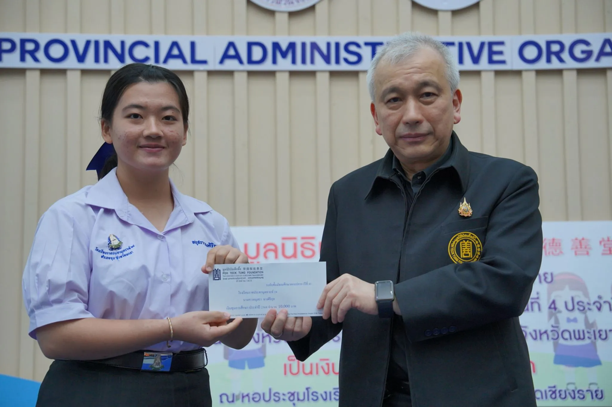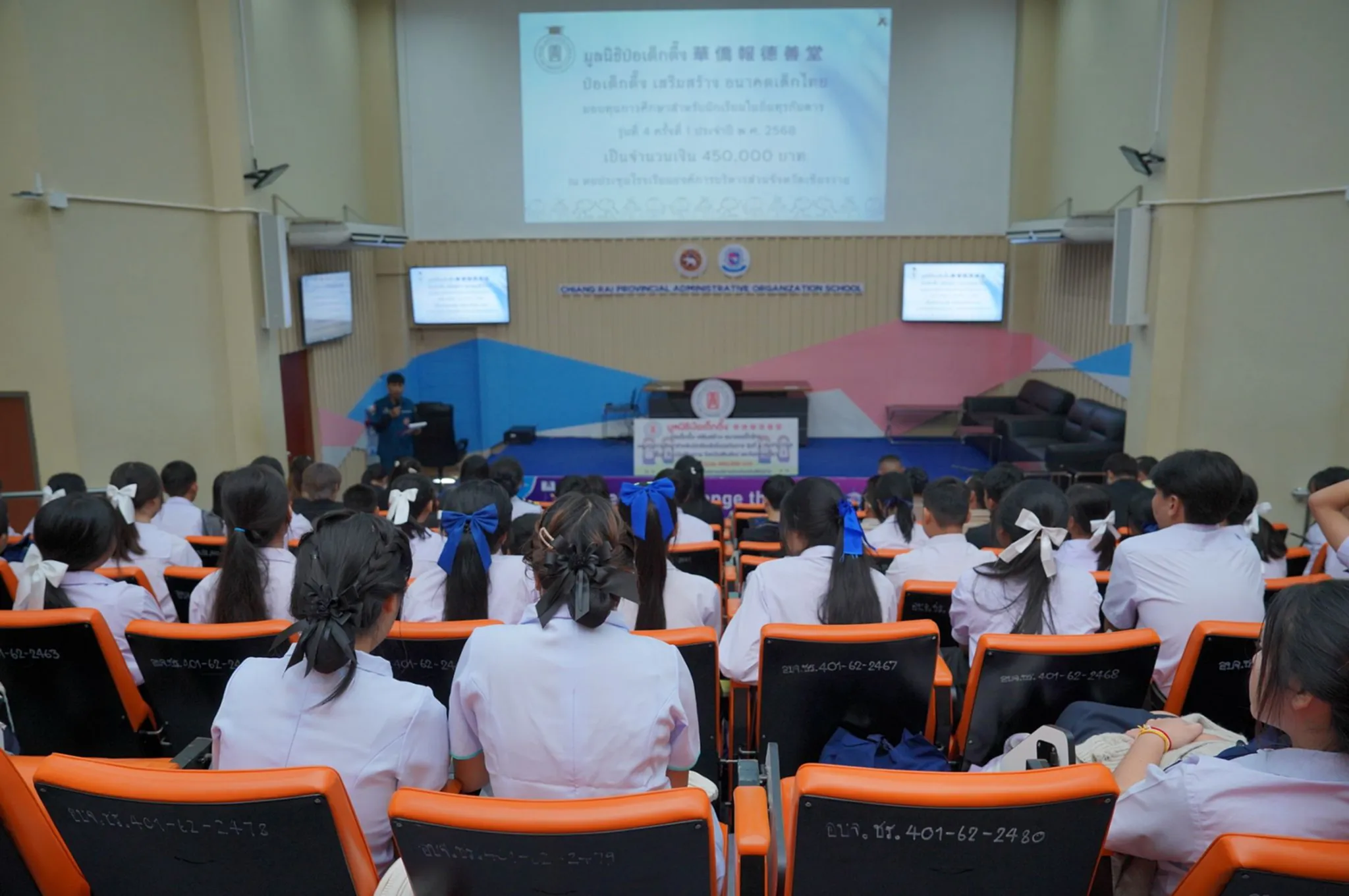 เมื่อวันที่ 24 พฤศจิกายน 68 มูลนิธิป่อเต็กตึ๊ง นำโดย นายสุรพงษ์ เตชะหรูวิจิตร กรรมการและรองเลขาธิการ พร้อมด้วย นายนิพนธ์ ลีละศิธร กรรมการ และนางสาวดวงชุตา ติยะพจนพรกุล ผู้ช่วยผู้จัดการฝ่ายสังคมสงเคราะห์ นำทีมแผนกส่งเสริมการศึกษาและอาชีพลงพื้นที่จังหวัดเชียงราย มอบทุนการศึกษาในระดับมัธยมศึกษาแก่นักเรียนในถิ่นทุรกันดาร รุ่นที่ 4 ครั้งที่ 1 ประจำปี 2568 ซึ่งเป็นการมอบทุนฯ ในรูปแบบต่อเนื่อง 3 ปี รวมจำนวน 60 ทุน รวมงบประมาณทั้งสิ้น 450,000 บาท (สี่แสนห้าหมื่นบาทถ้วน) โดยมี นายวีระยุทธ คีลาวงค์ รองผู้อำนวยการโรงเรียนองค์การบริหารส่วนจังหวัดเชียงราย พร้อมด้วยผู้บริหารสถานศึกษา อีก 20 แห่ง คณะครู อาจารย์ และผู้แทนนักเรียนจากโรงเรียน ร่วมในพิธี ณ หอประชุมโรงเรียนองค์การบริหารส่วนจังหวัดเชียงราย อำเภอเมือง จังหวัดเชียงราย