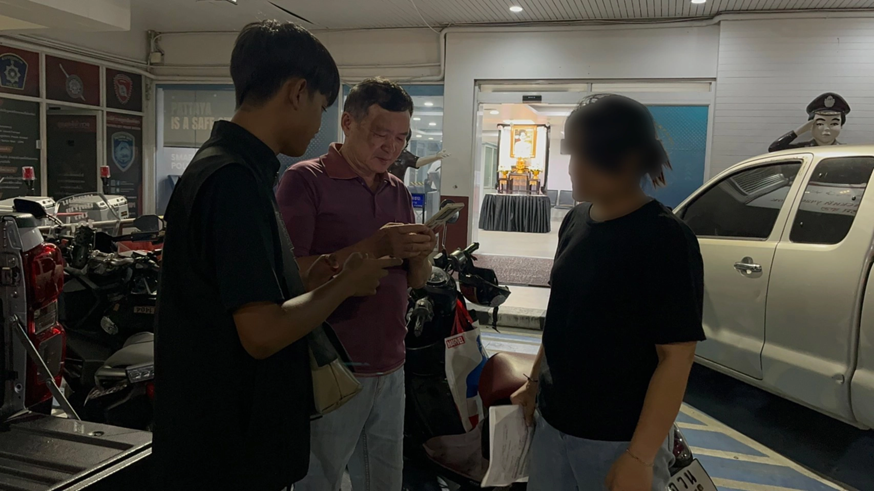 เมื่อเวลา 23.36 น.วันที่ 25 พฤศจิกายน 2568 น.ส.สุทธิพร แซ่ย่าง อายุ 30 ปี พนักงานขายกิ๊ฟช๊อป ตั้งอยู่ภายในซอยพัทยาใต้ 16 ต.หนองปรือ อ.บางละมุง จ.ชลบุรี เดินทางเข้าแจ้งความร้องทุกข์กับ ร.ต.อ.ณัฐฏชัยกร เสงี่ยมวิบูล รอง สว.สอบสวน สภ.เมืองพัทยา หลังถูกคนร้ายก่อเหตุลักทรัพย์ เป็นโทรศัพท์มือถือยี่ห้อ ซัมซุง A 22 มูลค่าประมาณ 8,000 บาท ไป โดยมีกล้องวงจรปิดสามารถบันทึกภาพเหตุการณ์ไว้ได้อย่างชัดเจน จึงได้มอบให้เจ้าหน้าที่ไว้เป็นหลักฐาน