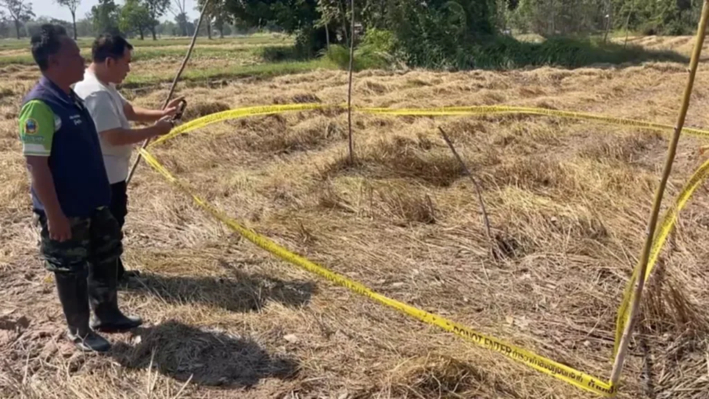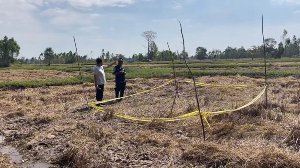 เมื่อวันนี้ 25 พ.ย. 68 นายกำจัด ช่วงประโคน ผู้ใหญ่โคกเพชร ตำบลกาบเชิง อำเภอกาบเชิง จังหวัดสุรินทร์ ได้นำผู้สื่อข่าวเข้าดูบริเวณที่พบหลุมต้องสงสัยคล้ายรอยตกของกระสุนลูกจรวด BM-21 กลางทุ่งนาของ น.ส.จีรภา ร่วมทวี ผู้ช่วยผู้ใหญ่บ้านบ้านกาบเชิง หมู่ 1 ตำบลกาบเชิง อำเภอกาบเชิง ซึ่งก่อนหน้านี้ด้านนายอำเภอกาบเชิง พร้อมเจ้าหน้าที่ฝ่ายปกครอง ร่วมกับตำรวจ สภ.กาบเชิง ลงพื้นที่ตรวจสอบเบื้องต้นไปแล้ว