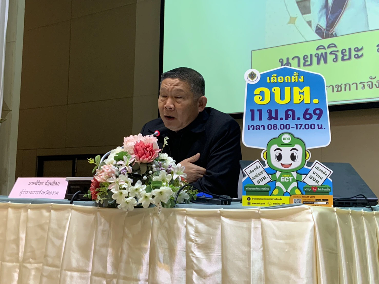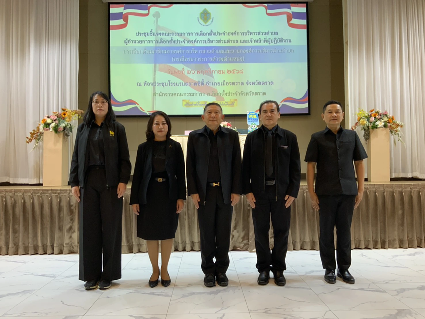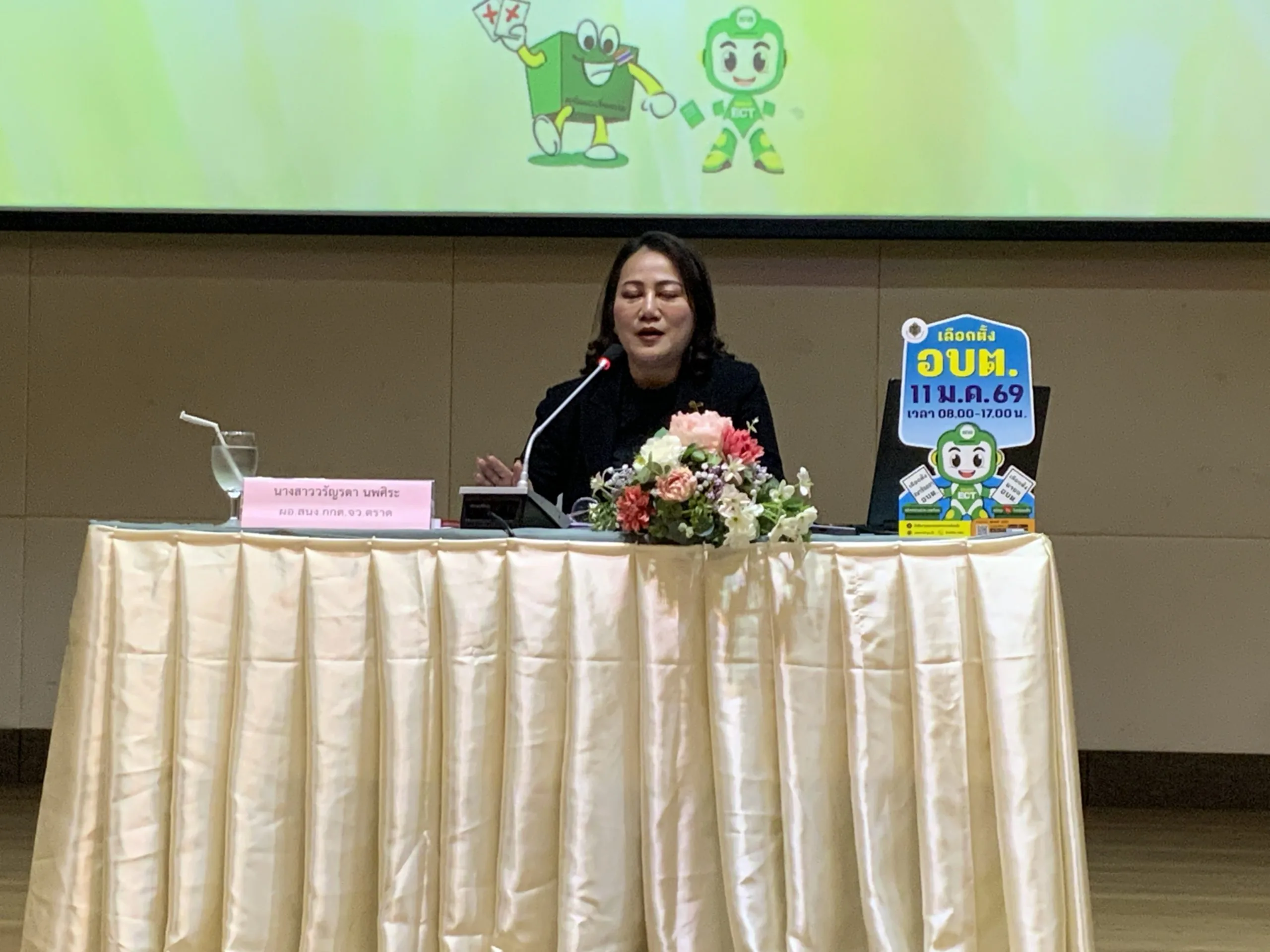 จ.ตราด/เวลา 09.30 น.วันที่ 26 พฤศจิกายน 2568 ที่โรงแรมตราดซิตี้ อ.เมืองจ.ตราด นายพิริยะ ฉันทดิลก ผู้ว่าราชการจังหวัดตราด เป็นประธานการประชุมชีแจงคณะกรรมการการเลือกตั้งประจำองค์การบริหารส่วนตำบล ผู้อำนวยการการเลือกตั้งประจำองค์การบริหารส่วนตำบล และเจ้าหน้าที่ผู้ปฏิบัติงานการเลือกตั้งสมาชิกสภาองค์การบริหารส่วนตำบลและนายกองค์การบริหารส่วนตำบล ร่วมประชุม มีนางสาววรัญรดา นพศิระ ผู้อำนวยการ สำนักงานคณะกรรมการเลือกตั้งประจำจังหวัดตราด ดำเนินการจัดขึ้น