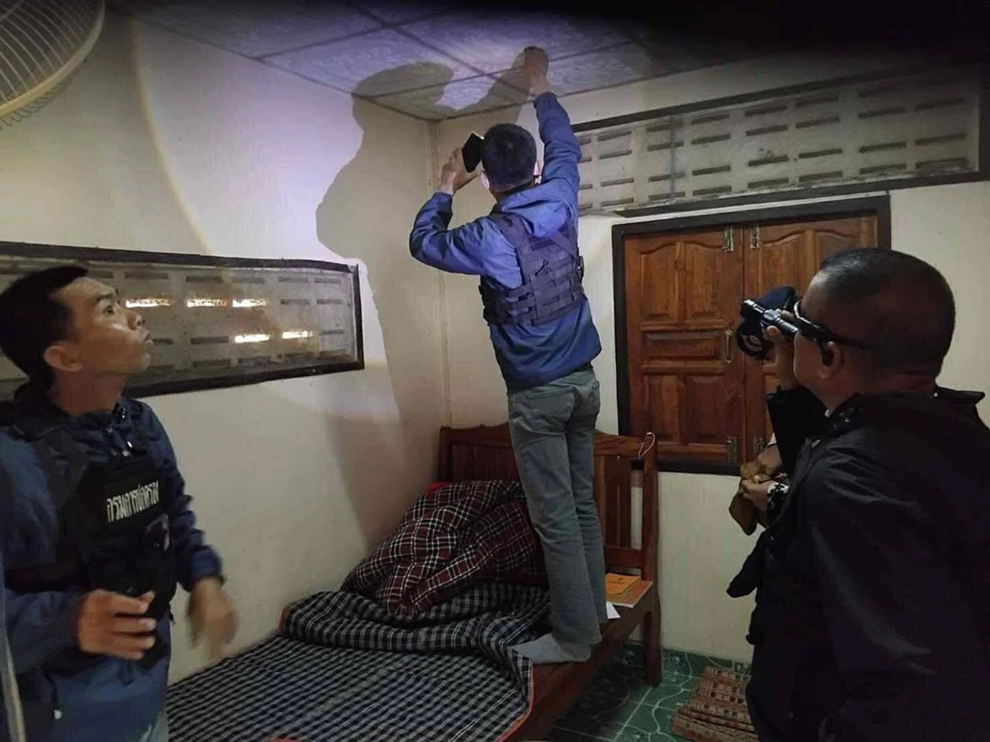 ต่อมาชุดปฏิบัติการพิเศษฝ่ายปกครองอำเภอนิคมคำสร้อย  จึงได้ออกตตรวจสอบพบพระรูปดังกล่าวบริเวณหน้ากุฎิ จึงแสดงตัวเป็นเจ้าพนักงาน ปปส.  ได้สอบถาม และขออนุญาตตรวจปัสสาวะเบื้องต้นพบผลปัสสาวะเป็น บวก (เมทแอฟเฟตามีน)