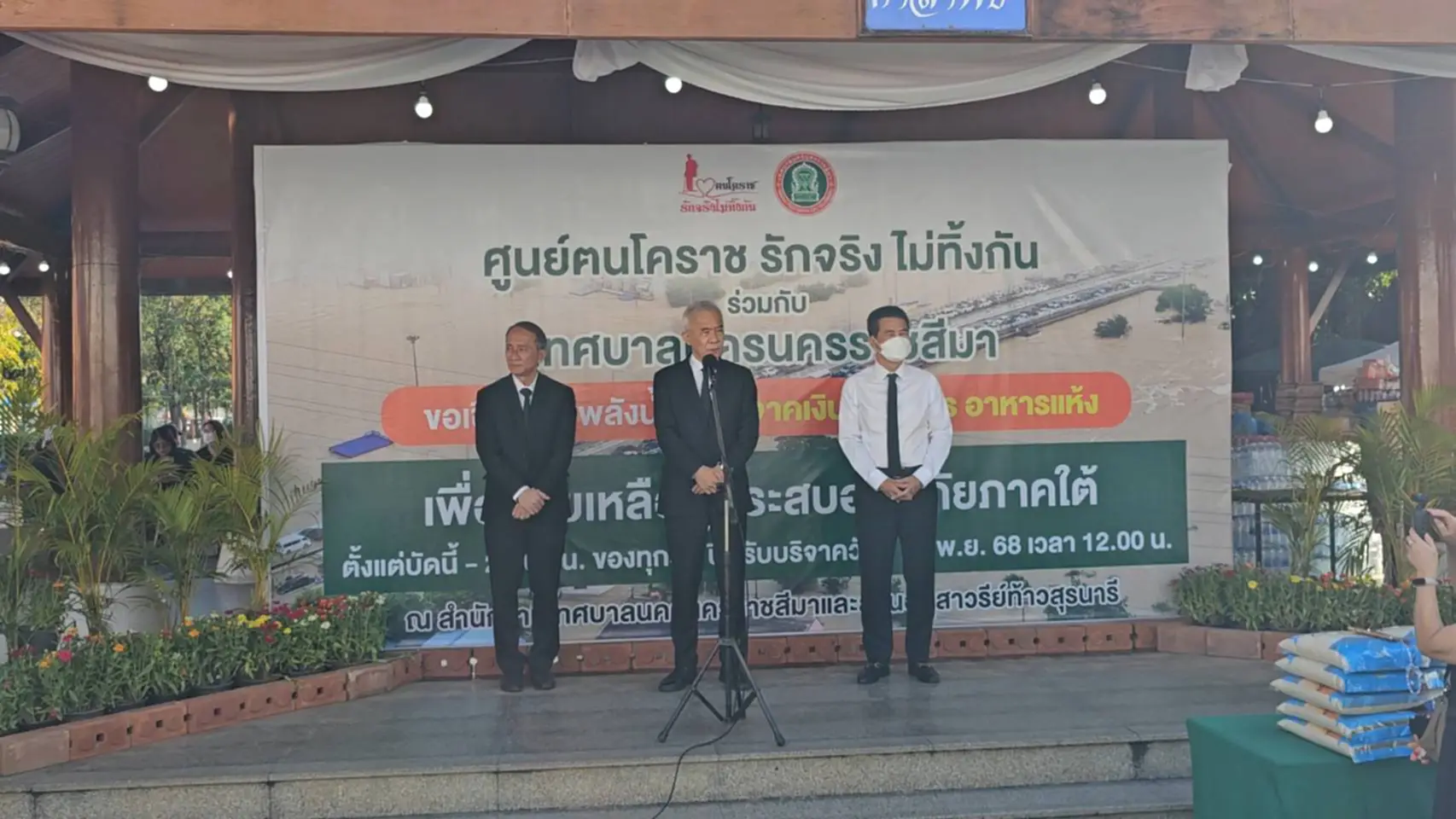 วันที่ 26 พฤศจิกายน 2568 บรรยากาศบริเวณลานอนุสาวรีย์ท้าวสุรนารีวันนี้ เต็มไปด้วยน้ำใจของพี่น้องชาวโคราช เมื่อเทศบาลนครนครราชสีมา เปิดศูนย์รับบริจาคช่วยผู้ประสบอุทกภัยภาคใต้ ระหว่างวันที่ 26–28 พฤศจิกายน ตั้งแต่เวลา 8 โมงเช้า ถึง 2 ทุ่ม โดยมี นายสุวัจน์ ลิปตพัลลภ อดีตรองนายกรัฐมนตรี เป็นประธานเปิดงานอย่างเป็นทางการ พร้อมด้วย นายวรรณรัตน์ ชาญนุกูล นายกเทศมนตรีนครนครราชสีมา และหน่วยงานราชการหลายภาคส่วนร่วมต้อนรับ