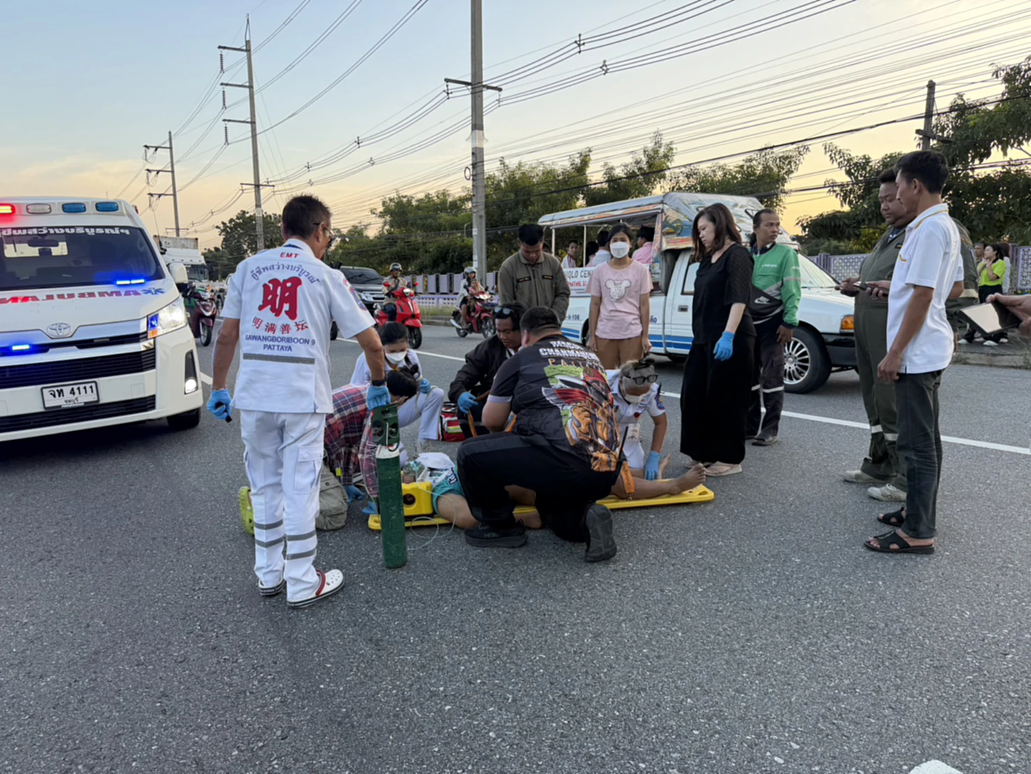 เมื่อเวลา 17.06 น.วันที่ 26 พฤศจิกายน 2568 ศูนย์วิทยุหน่วยกู้ภัยสว่างบริบูรณ์ธรรมสถานเมืองพัทยา รับแจ้งอุบัติเหตุมีพลัดตกจากยานพาหนะ มีผู้ได้รับบาดเจ็บ เหตุเกิดบนถนนสุขุมวิท โรงโป๊ะ ฝั่งขาเข้ากรุงเทพมหานคร อ.บางละมุง จ.ชลบุรี หลังรับแจ้ง จึงรีบนำกำลังเจ้าหน้าที่อาสาสมัครกู้ภัยฯ รีบไปตรวจสอบ