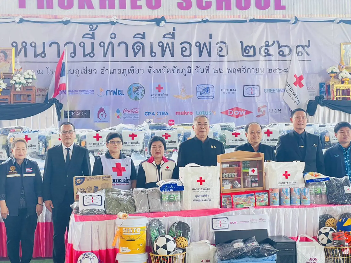 วันที่ 26 พฤศจิกายน พ.ศ. 2568 นายอนันต์ นาคนิยม ผู้ว่าราชการจังหวัดชัยภูมิ พร้อมด้วย สำนักงานบรรเทาทุกข์และประชานามัยพิทักษ์ สภากาชาดไทย และภาคีเครือข่ายทั้งภาครัฐและภาคเอกชน ได้ผนึกกำลังร่วมกันจัดกิจกรรมอันเป็นประโยชน์แก่ประชาชนในพื้นที่ อำเภอภูเขียว ภายใต้ชื่อโครงการ “หนาวนี้ทำดีเพื่อพ่อ 2569” เพื่อบรรเทาความเดือดร้อนจากภัยหนาวและส่งเสริมคุณภาพชีวิตที่ดีให้แก่พี่น้องประชาชน