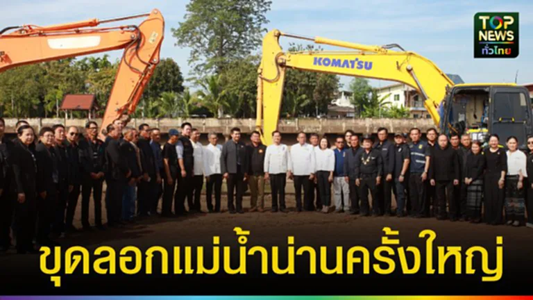 วันที่ 26 พฤศจิกายน 2568 ที่บริเวณริมแม่น้ำน่าน บ้านแสงดาว ตำบลฝายแก้ว อำเภอภูเพียง จังหวัดน่าน นายชัยนรงค์ วงศ์ใหญ่ ผู้ว่าราชการจังหวัดน่าน พร้อมด้วย นายบรรจง ขุนเพชร รองผู้ว่าราชการจังหวัดน่าน หน่วยงานท้องถิ่น และภาคส่วนที่เกี่ยวข้อง ร่วมประกอบพิธีบวงสรวง เปิดโครงการขุดลอกลำน้ำน่านครั้งใหญ่เพื่อป้องกันปัญหาอุทกภัย น้ำป่าไหลหลาก และปัญหาน้ำล้นตลิ่ง