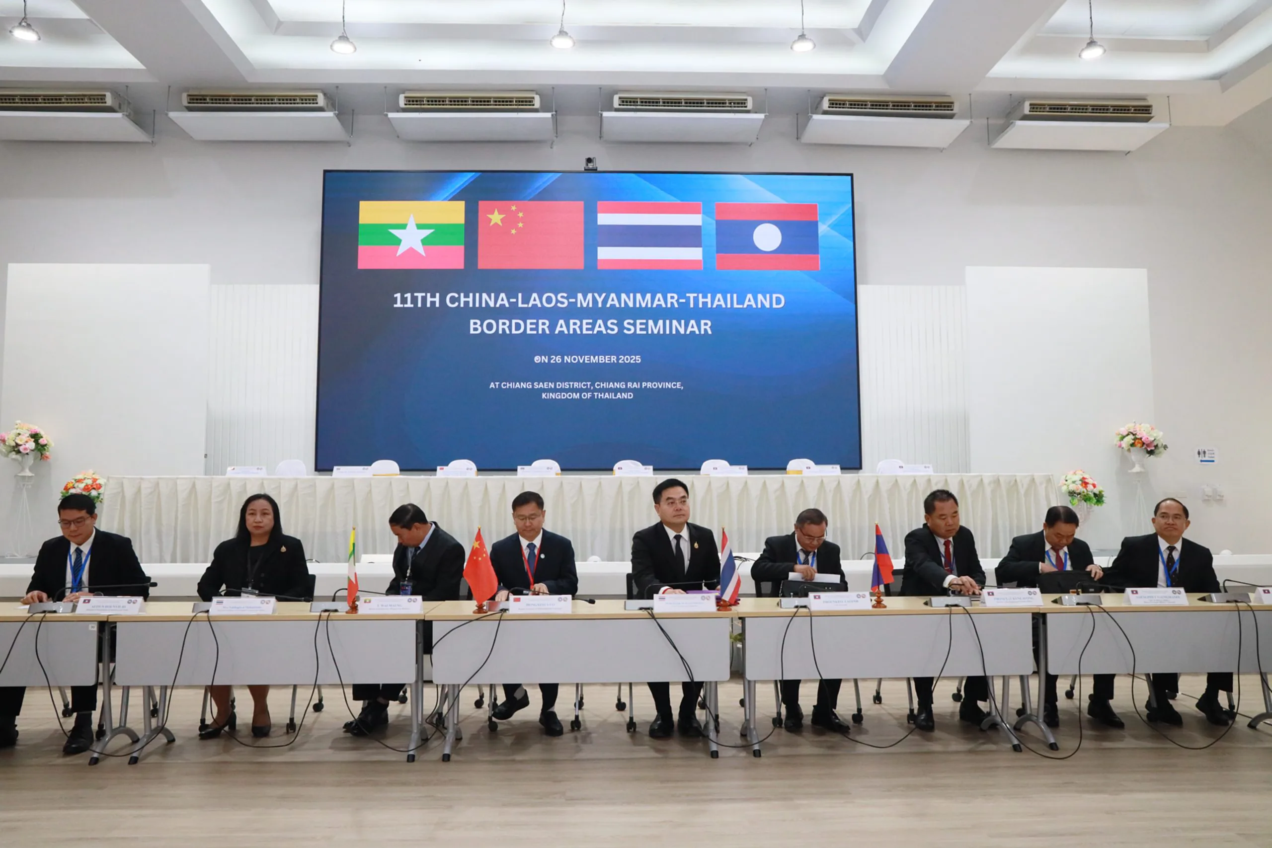 วันที่ 26 พฤศจิกายน 2568 ณ ห้องประชุมหอฝิ่น อ.เชียงแสน จ.เชียงราย นายนรศักดิ์ สุขสมบูรณ์ รองผู้ว่าราชการจังหวัดเชียงราย เป็นประธานการประชุมสัมมนาความร่วมมือ 4 ประเทศ 10 ฝ่ายเขตชายแดน ครั้งที่ 11 โดยมีหน่วยงานจากจังหวัดเชียงใหม่และเชียงราย ผู้แทนฝ่ายไทย รวมถึงผู้แทนระดับสูงจากเขตปกครองตนเองชนชาติไหลื้อสิบสองปันนา มณฑลยูนนาน (จีน) เมืองเชียงตุง–ท่าขี้เหล็ก (เมียนมา) และผู้แทนจากแขวงหลวงพระบาง อุดมไซ พงสาลี หลวงน้ำทา และบ่อแก้ว (สปป.ลาว) เข้าร่วมอย่างพร้อมเพรียง